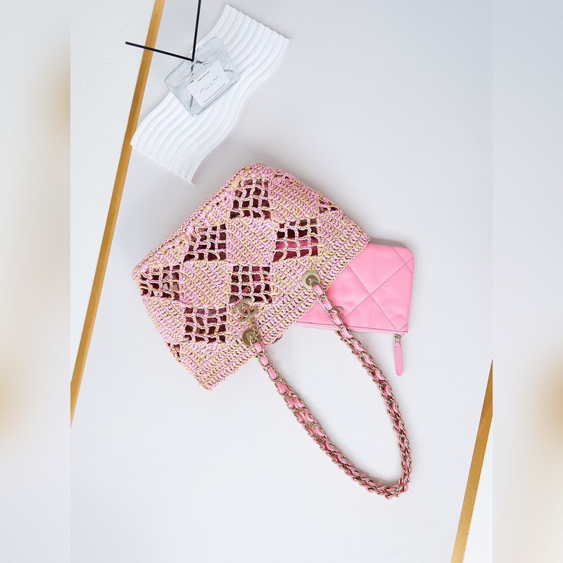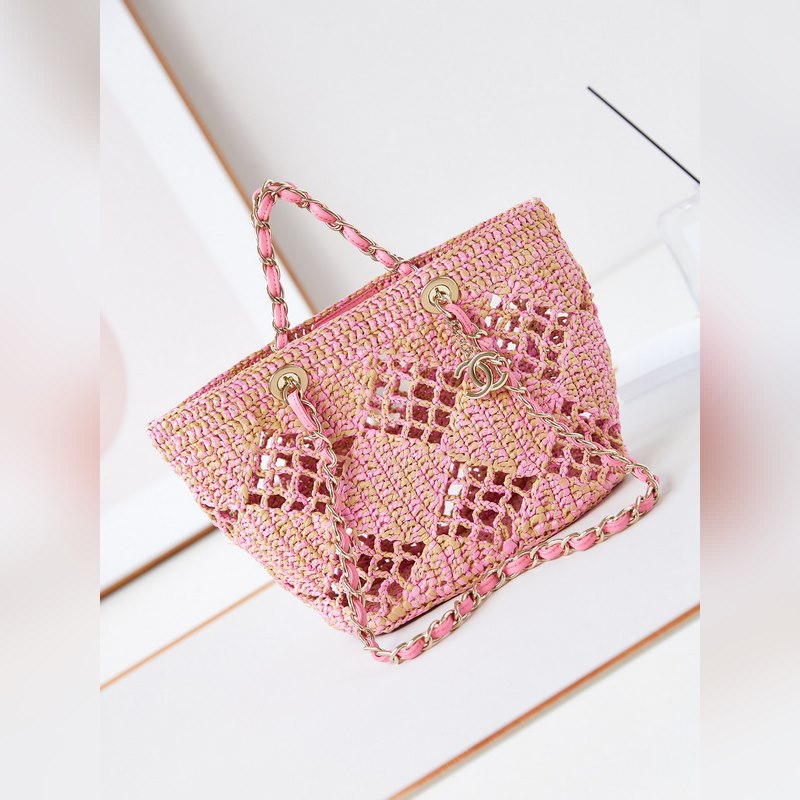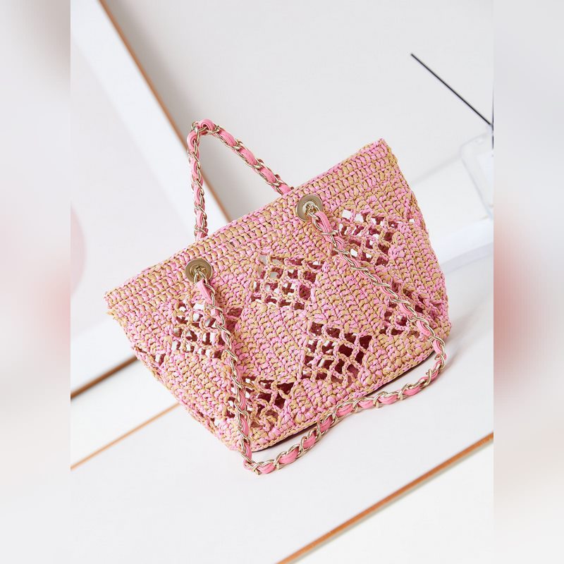 샤넬 코코 비치 백 투각 디자인 & 라피아 직조 사이즈 24-32