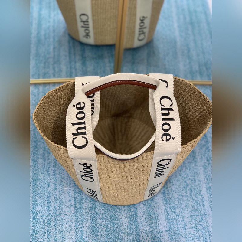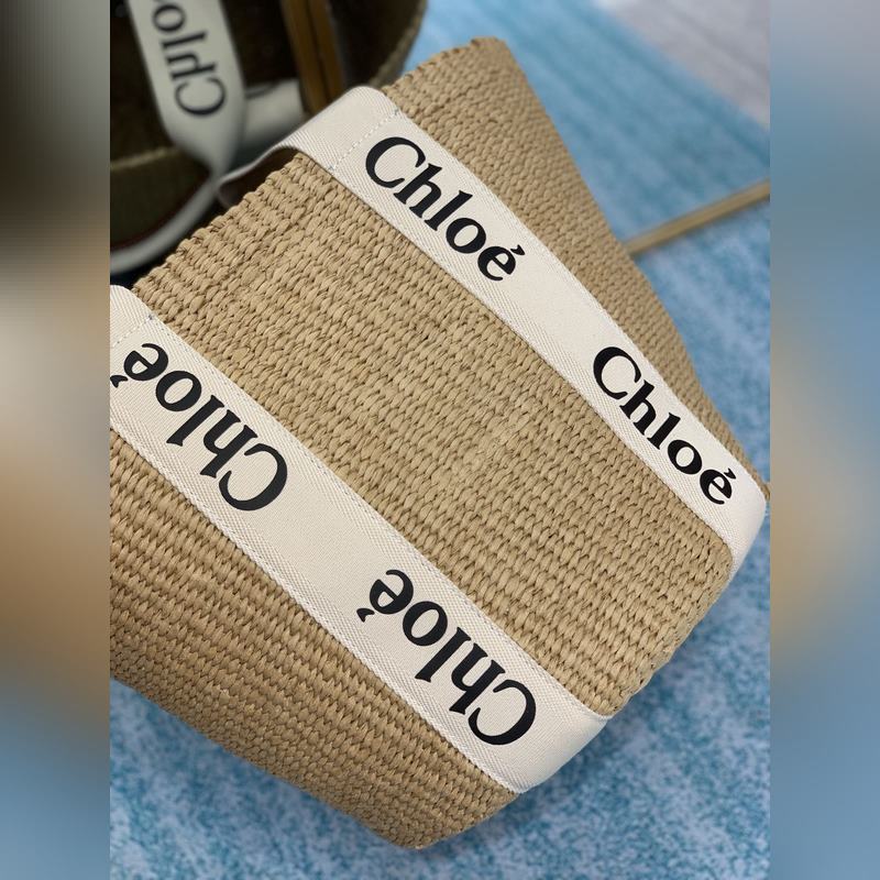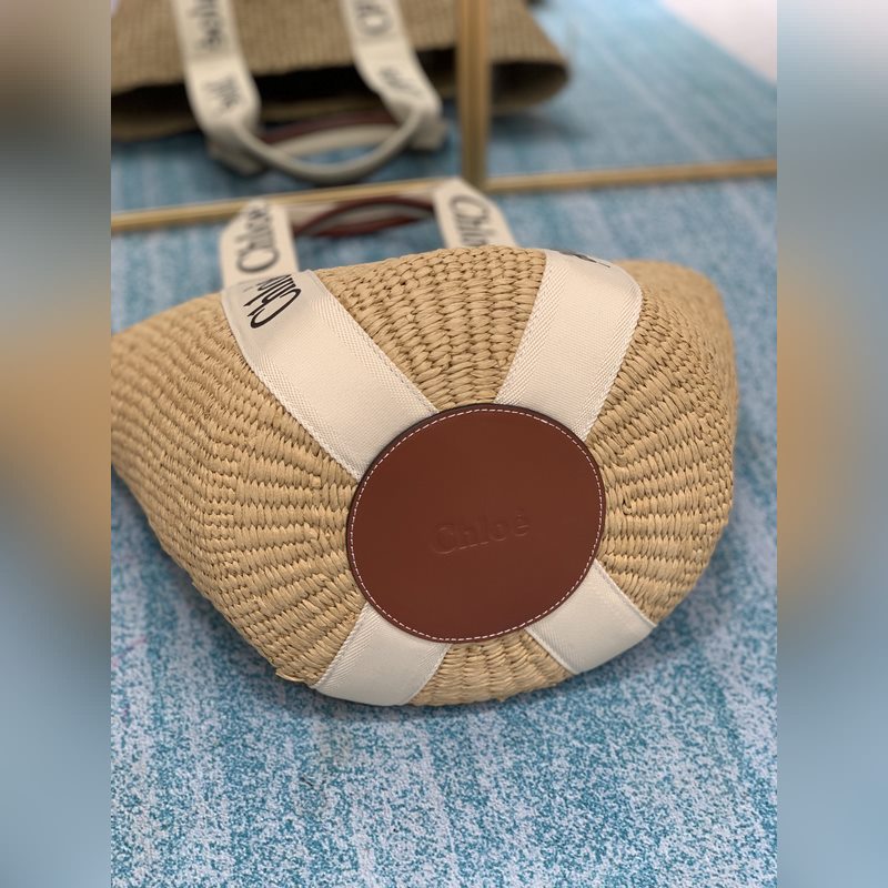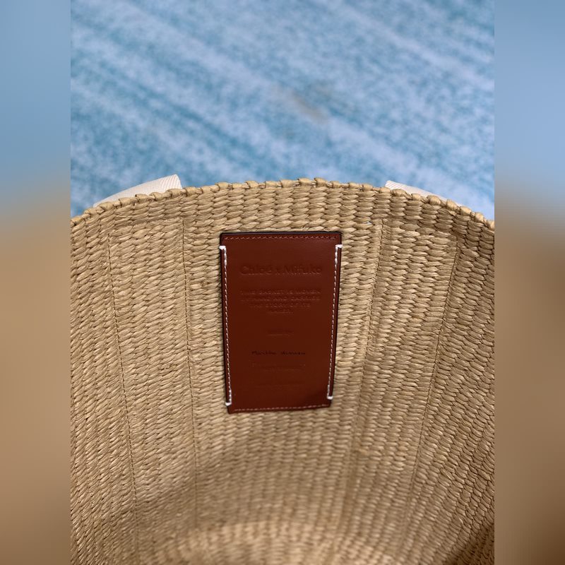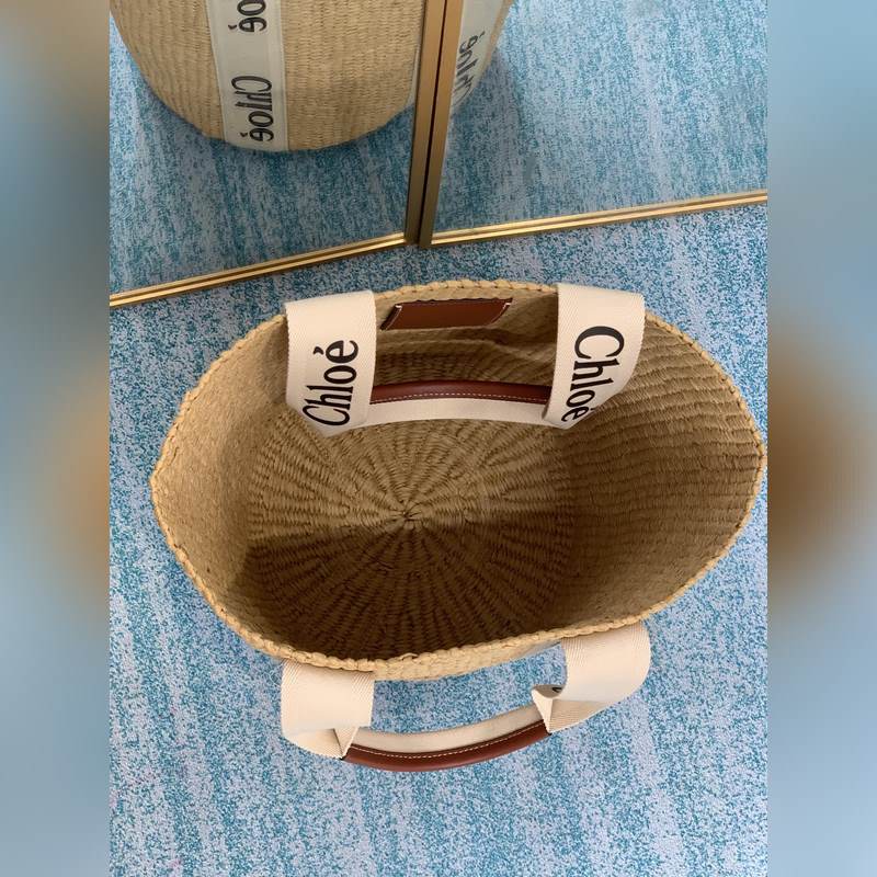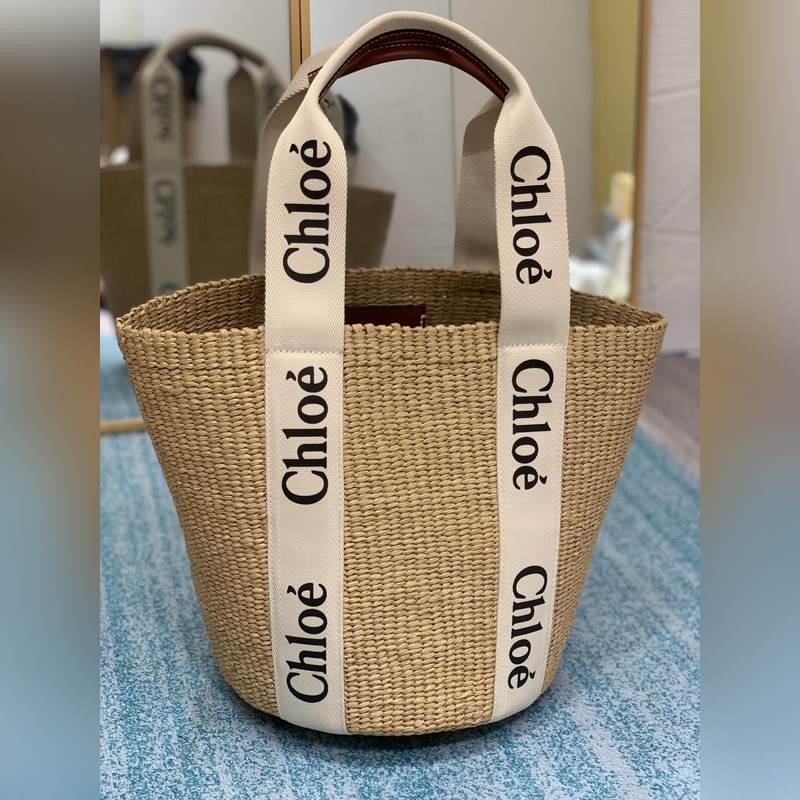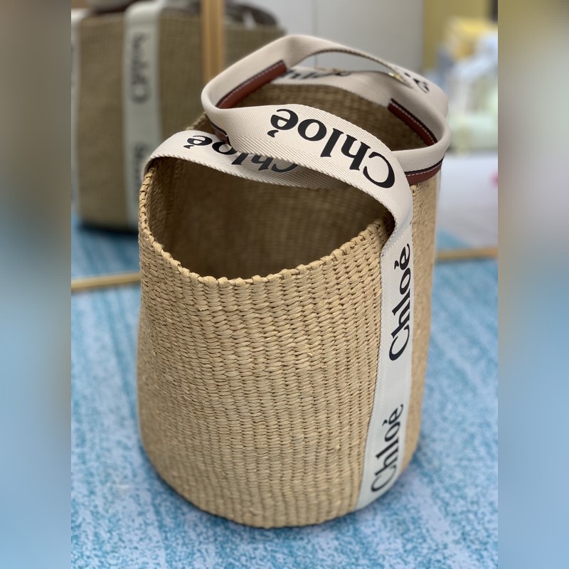 CHLOE 우디 대형 바구니 가방 우디 리본 장식 캐리 및 숄더 1개의
