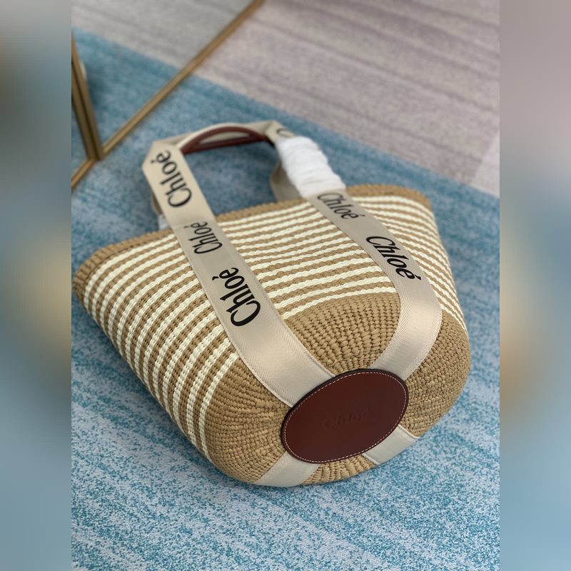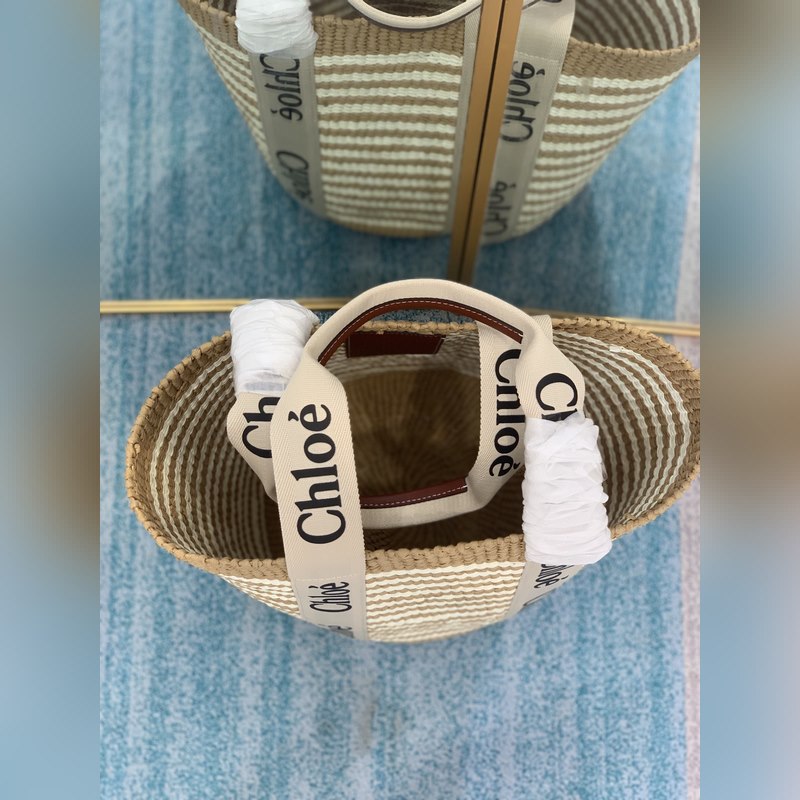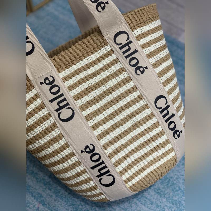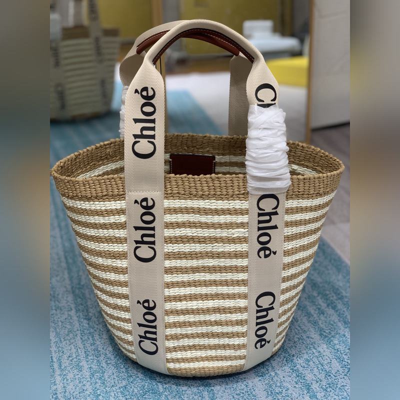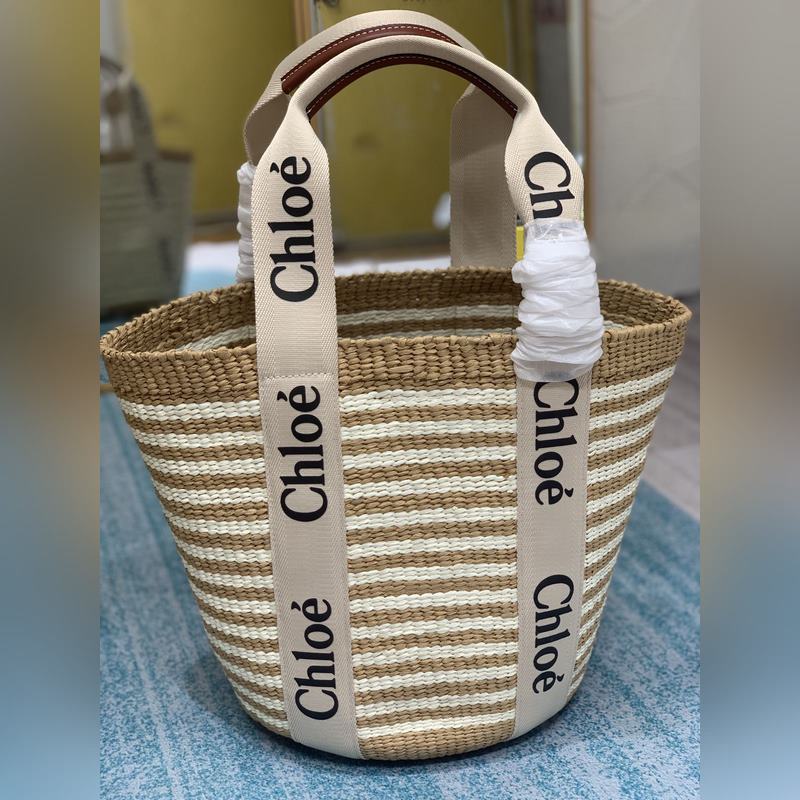 CHLOE 우디 대형 바구니 가방 우디 리본 손잡이와 어깨 1 넉넉한