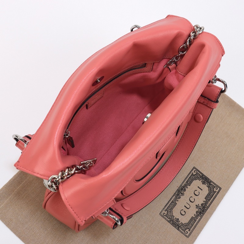 구찌 신상 모델 백화점 품질 셀러브리티 스타일 실제 제품 사진! 모델: 751518 핑크색 가죽 크기: 가로 24cm x 세로 30cm x 깊이 6cm. 즉시 배송 가능한 재고 있음!