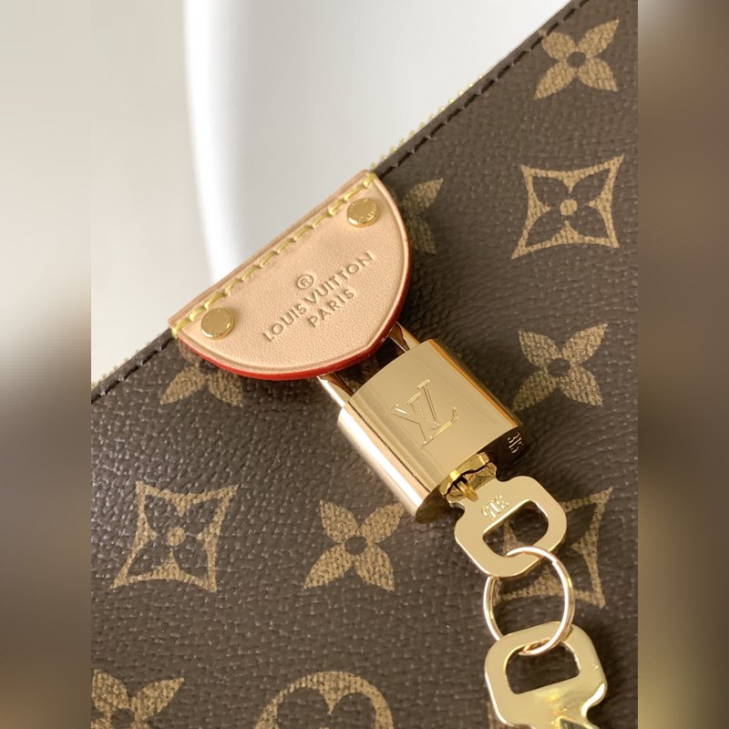LV 오셰트 티레트 핸드백은 모노그램 캔버스 소재로 만든 게으른 실루엣