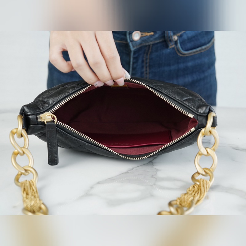 수공예 워크숍: 겨드랑이 가방 모두에게 큰 인기! 다시 돌아왔습니다! 가방은 가볍고 부피가 크지 않으며 독특하고 복고적인 금속 체인이 매우 아름답고 장인 정신이 강하게 느껴집니다. 클래식한 블랙과 골드 색상 조합이 눈길을 사로잡고 술 장식이 정말 매력적입니다! 10점 만점에 10점을 주고 싶습니다! 크기: 19*24*5 소매가: 40900 RMB