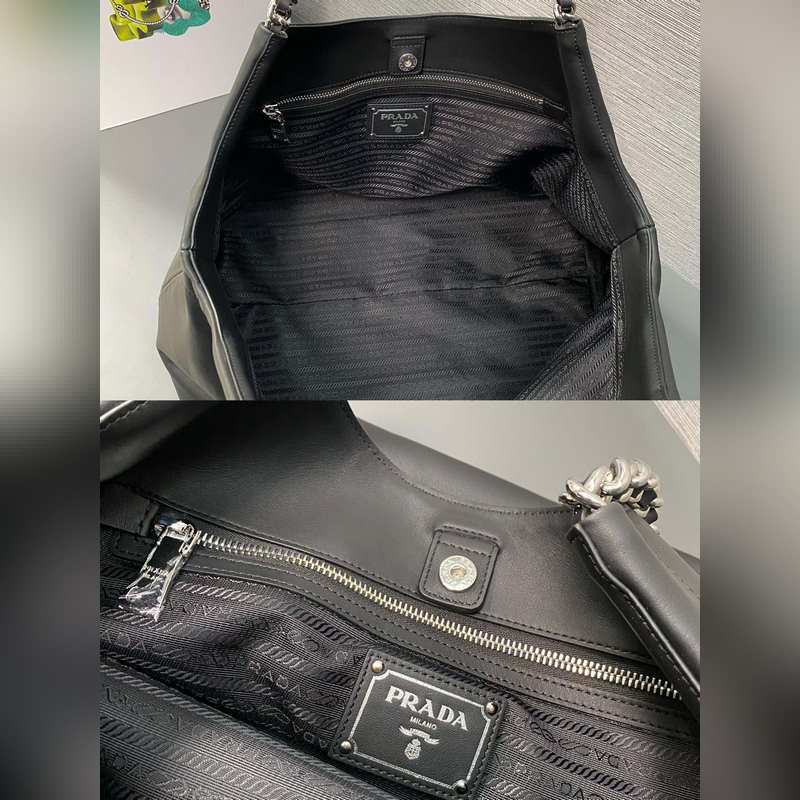 [최고 품질의 정통 싱글] 새로 도착: 1BA638 토트백 중고품이지만 상태가 아주 좋습니다. 이 가방은 수입 송아지 가죽으로 만들어졌으며 일 년 내내 착용할 수 있고 남녀 모두 착용할 수 있는 매우 클래식한 인터넷 셀러브리티 모델입니다. 검은색과 은색의 조합은 매우 고상하고 우아하게 보입니다. 가죽은 내구성이 뛰어나고 관리가 쉬우며 심플하고 우아한 스타일은 가볍고 기능성이 뛰어납니다. 이 토트백은 정말 인기가 많으니 가능하면 빨리 손에 넣으세요! 가방 크기: 길이 39 x 높이 29 x 밑면 19cm