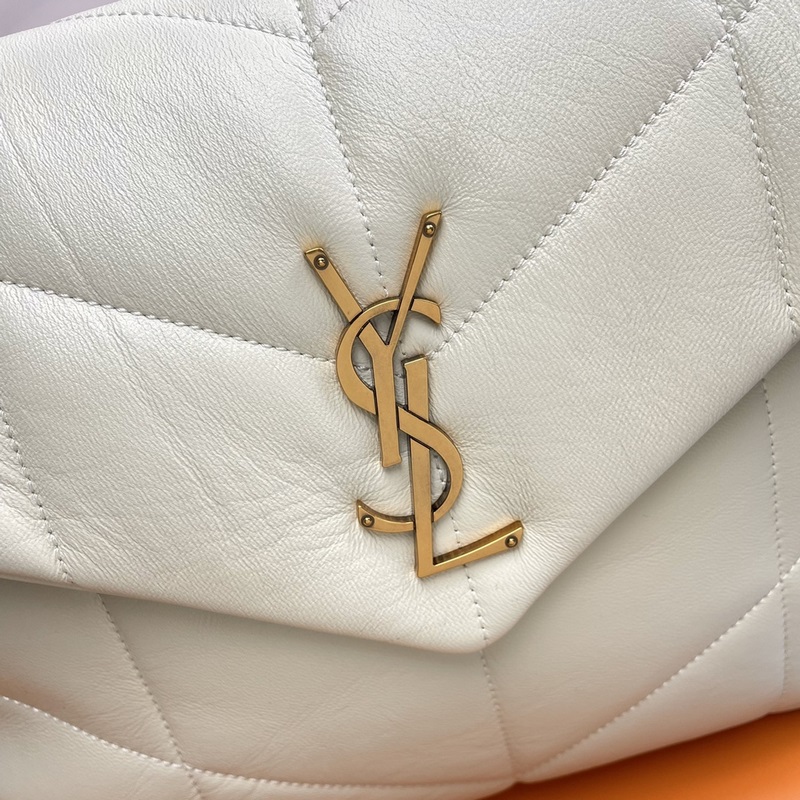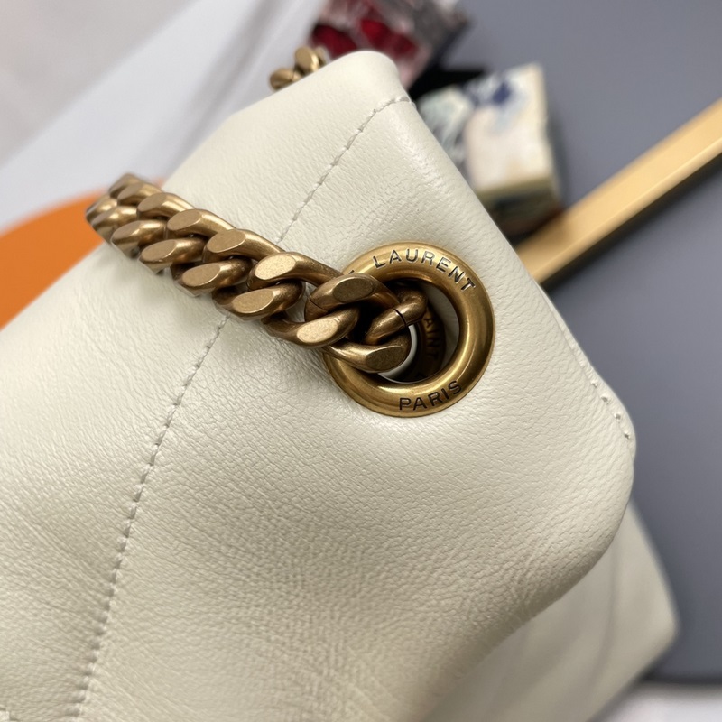 # 화이트/골드 버튼 오리지널 싱글 35cm0 LOULOU UFFER 퀼팅 양가죽 가방은 100% 양가죽으로 만들어져 촉감이 부드럽고 섬세하며 마치 구름을 안고 있는 듯한 느낌을 줍니다. 클래식한 Y 패밀리 로고 체인 단추 장식 하드웨어는 모두 브러시드 실버 메탈로 만들어졌으며 무광택의 프로스트 마감 처리로 매우 세련된 느낌을 줍니다. 크기: 35x23x13.5cm 모델: 577475.Zx