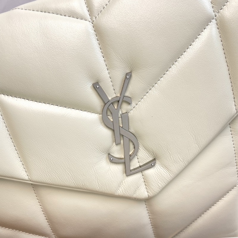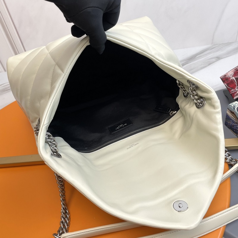 # 화이트/실버 버클(오리지널 싱글) 35cm LOULOU UFFER 퀼팅 양가죽 가방 100% 양가죽으로 만들어져 촉감이 부드럽고 섬세하며 구름을 안고 있는 듯한 느낌을 줍니다. 클래식한 Y 패밀리 로고 체인 버클 하드웨어는 모두 브러시드 실버 메탈로 만들어져 무광택의 안개가 낀 듯한 질감과 독특한 느낌을 줍니다. 크기: 35x23x13.5cm 모델: 577475.Zx