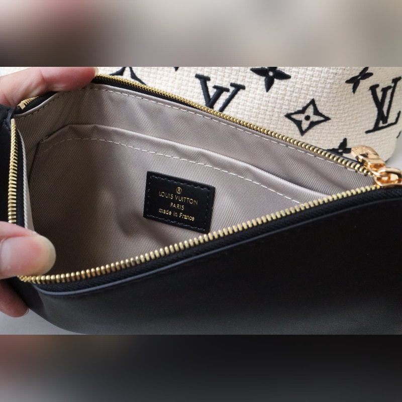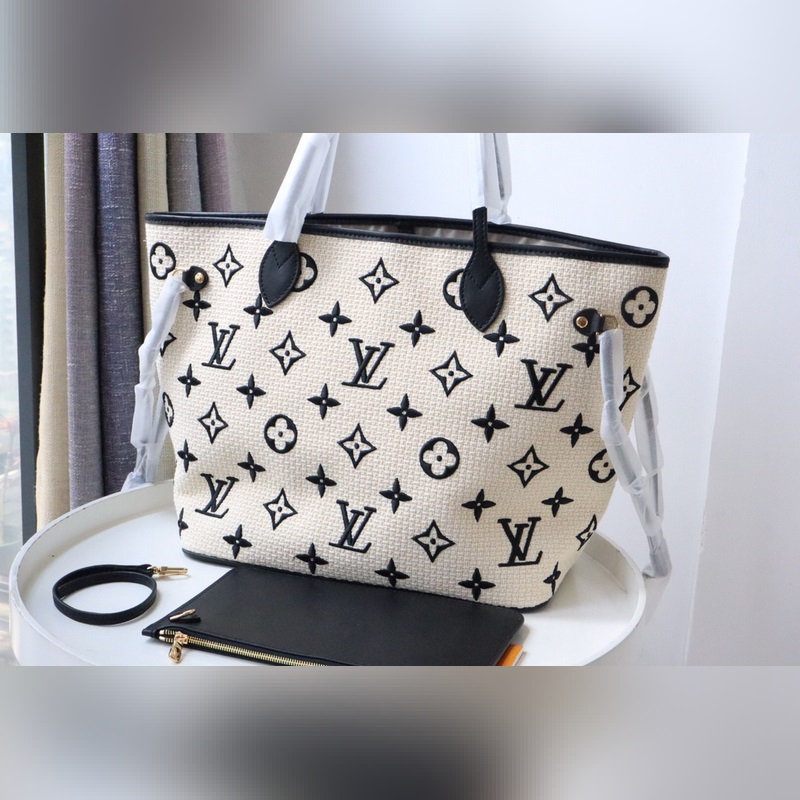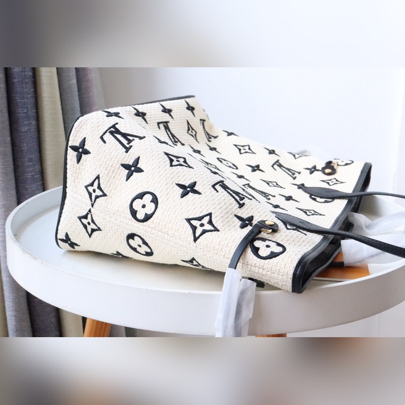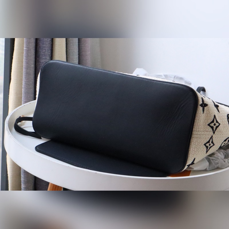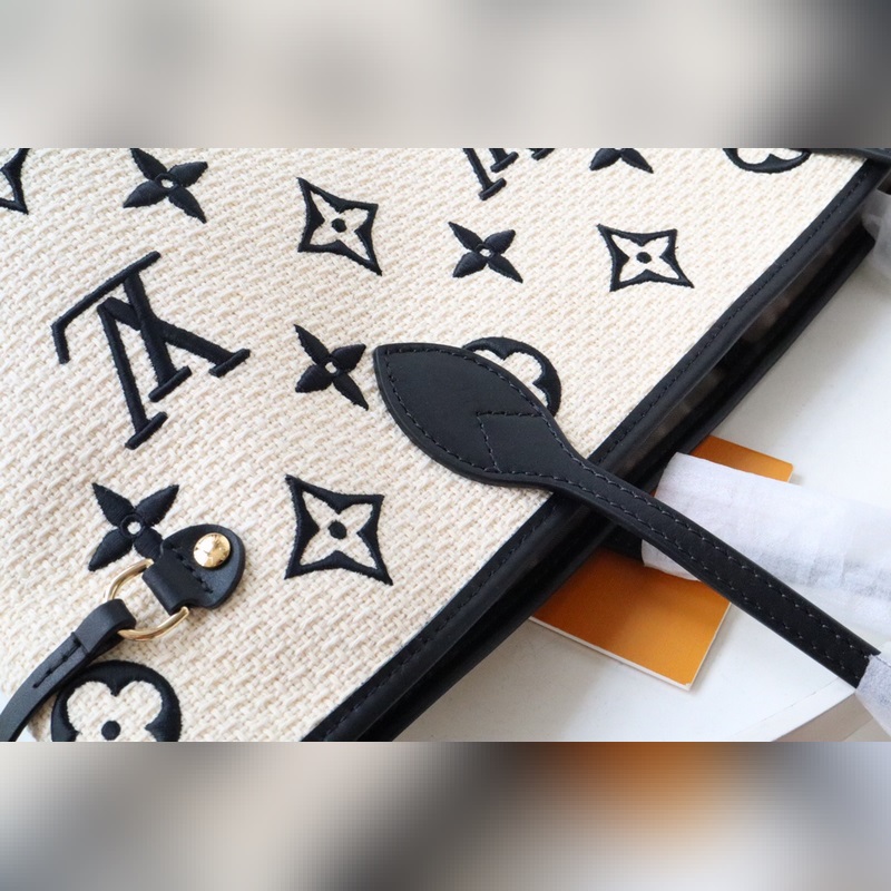 원본 싱글 M22838 블랙 핸드백 새로운 풀 캡슐 컬렉션의 네버풀 MM은 해변 휴가의 평온한 정신을 반영합니다. 유연한 라피아 코튼으로 제작되었으며 섬세한 여름 버전 모노그램 패턴으로 장식되어 있습니다. 이 다이어리 액세서리는 넉넉한 사이즈로 편리하고 관리가 쉽습니다. 크기: 31 x 28 x 14cm
