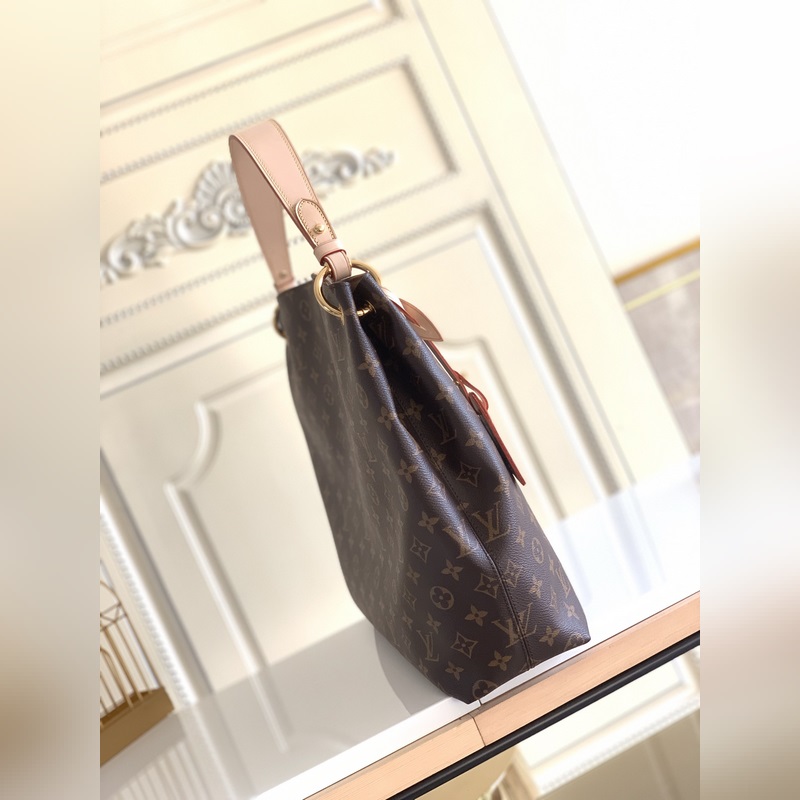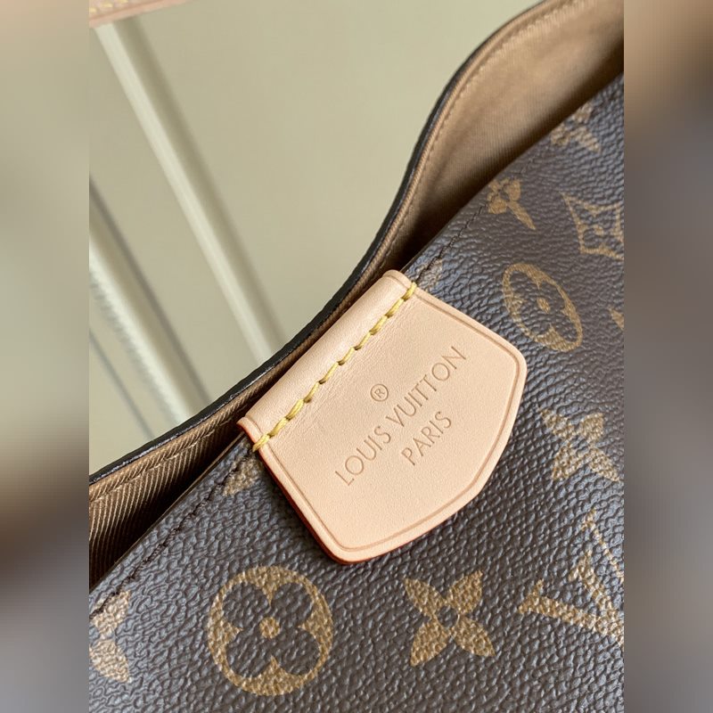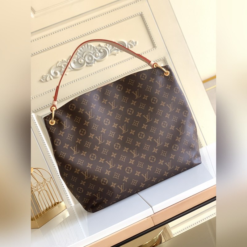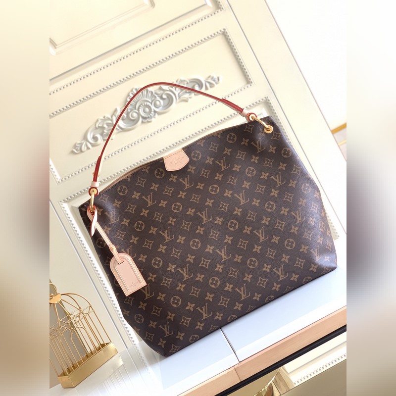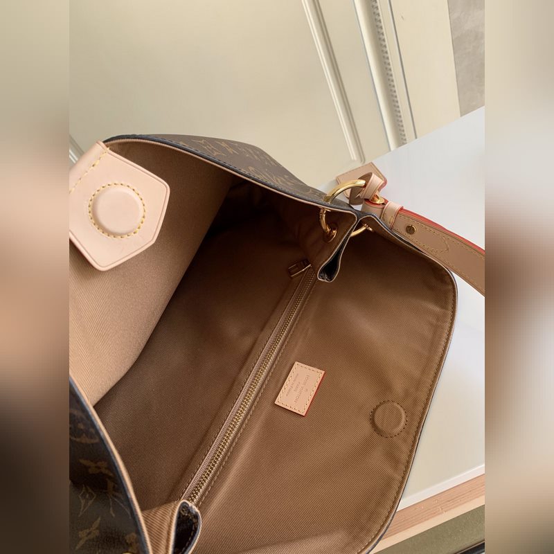 [원작 하이위안 싱글 리얼 홈 샷] 최고급 오리지널 M43704 대형 독서용 안경 살구색 쇼핑백 오리지널 모노그램 캔버스 소재 올스틸 하드웨어 절묘한 매칭 패턴 세련되고 우아한 카키색 빨간색 안감 스냅 버튼이 달린 핸드백 다양한 스타일과 매치하기 좋은 가볍고 넉넉한 용량 디자인 가볍고 실용적. 크기: 35.5 × 14.0 × 33.5cm