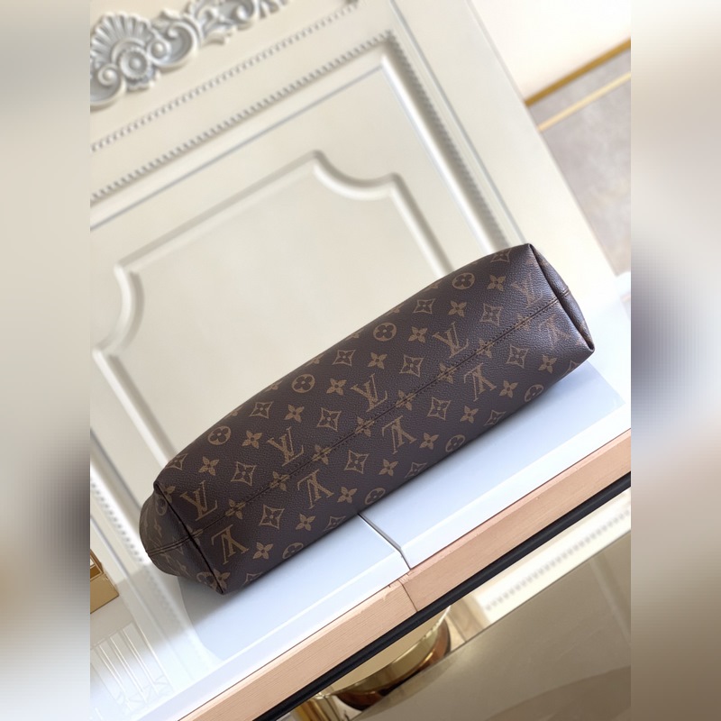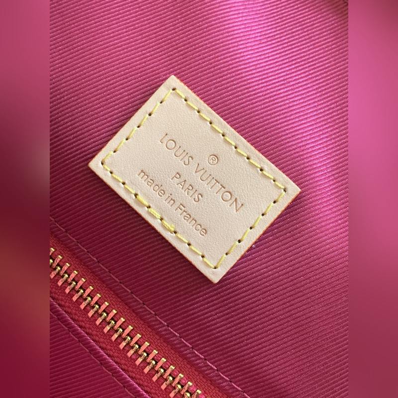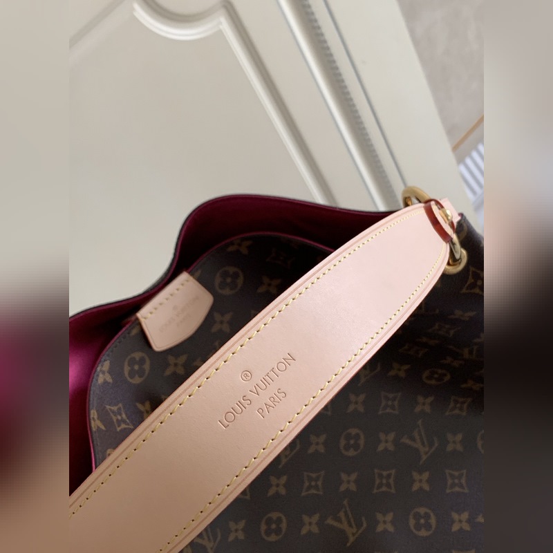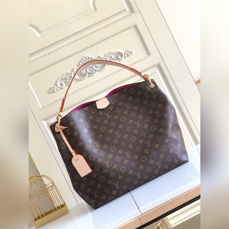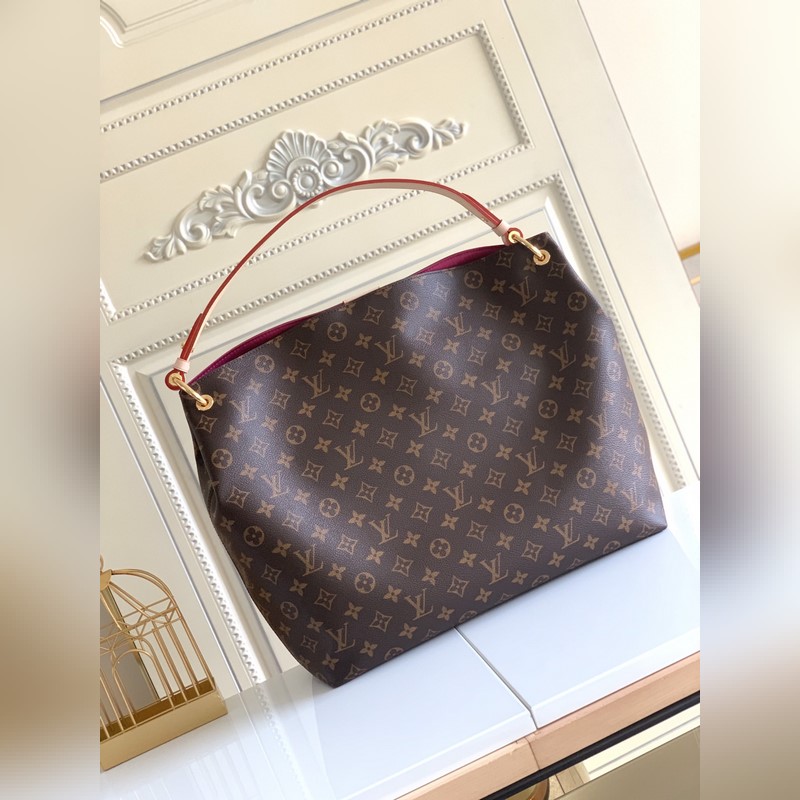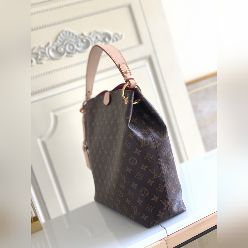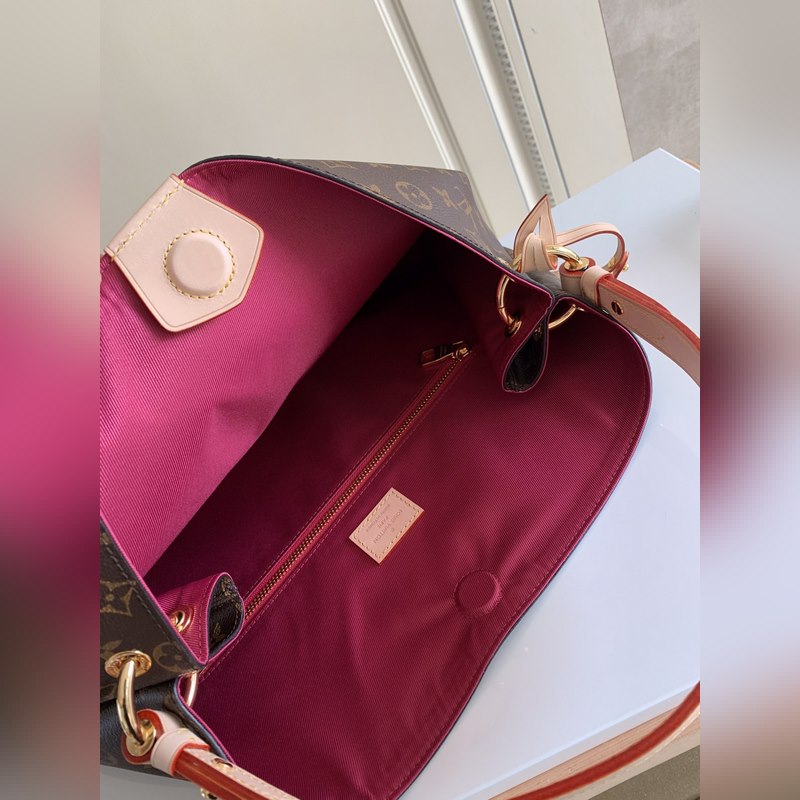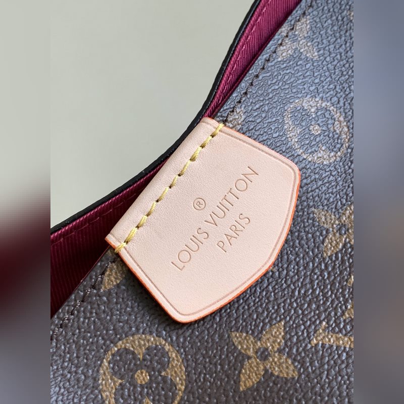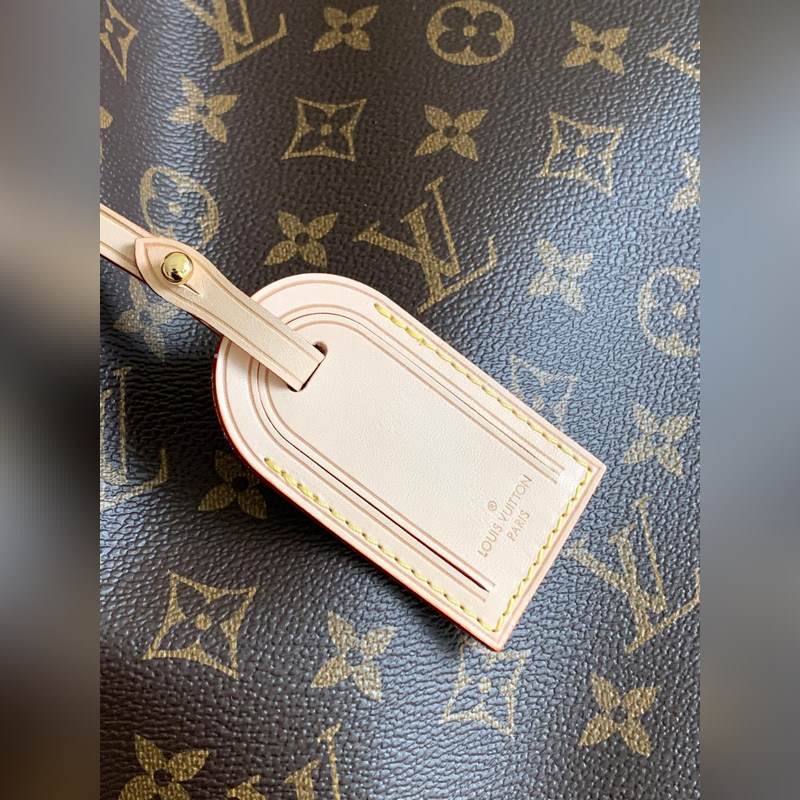 [원작: 하이위안 단독주택 사진] 최고 품질의 오리지널 M43703 대형 구식 장미색 쇼핑백 오리지널 모노그램 캔버스 소재 올스틸 하드웨어 절묘한 매칭 패턴 세련되고 우아한 느낌 빨간색과 회색 안감 스냅 버튼이 달린 핸드백 여러 가지 스타일과 믹스매치하기에 적합 가볍고 넉넉한 용량 가볍고 실용적. 크기: 35.5 × 14.0 × 33.5cm
