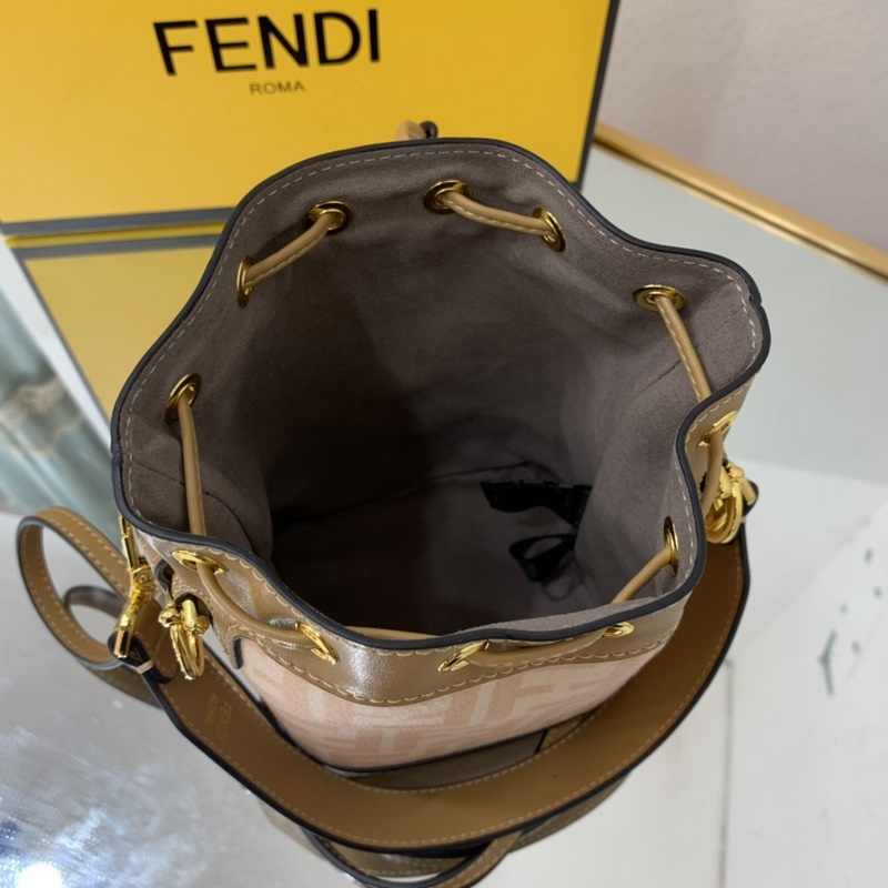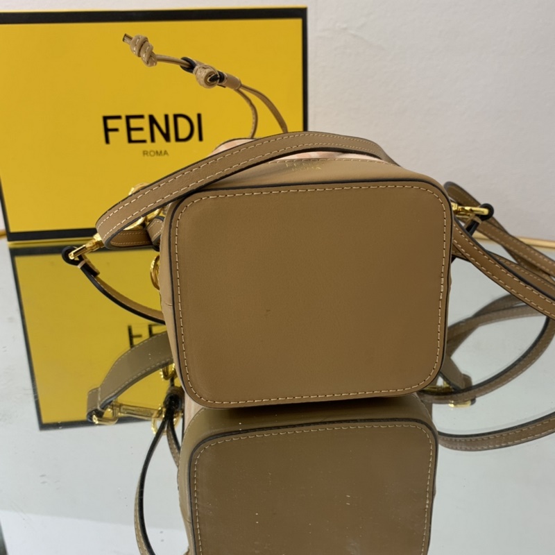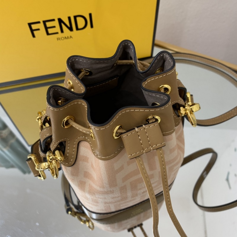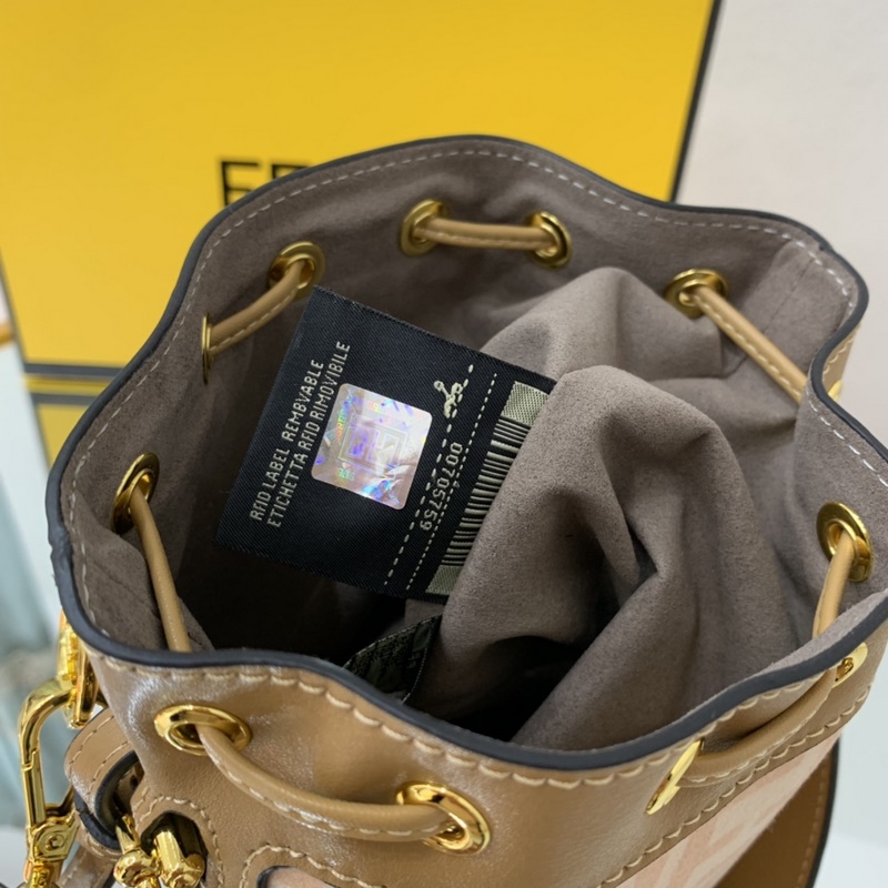 펜디 최고급 소가죽으로 만든 미니 버킷백 플란넬 브라운 패턴에 다크 브
