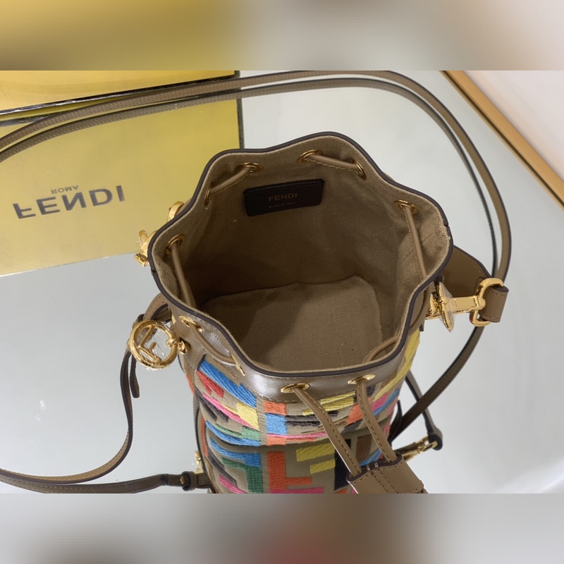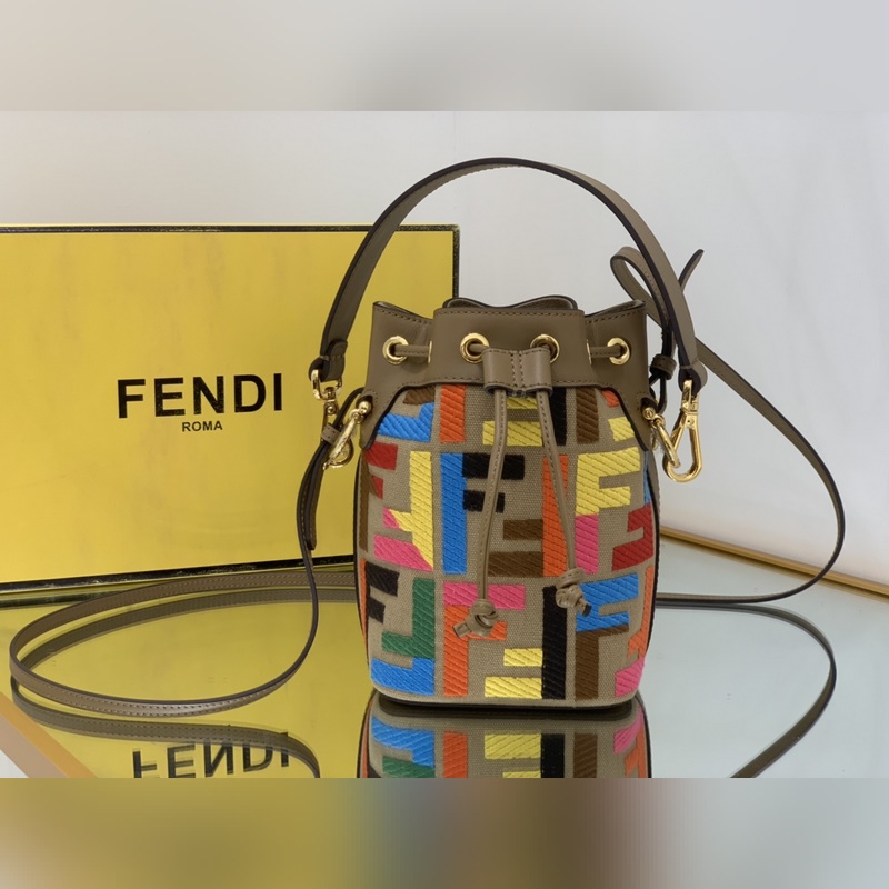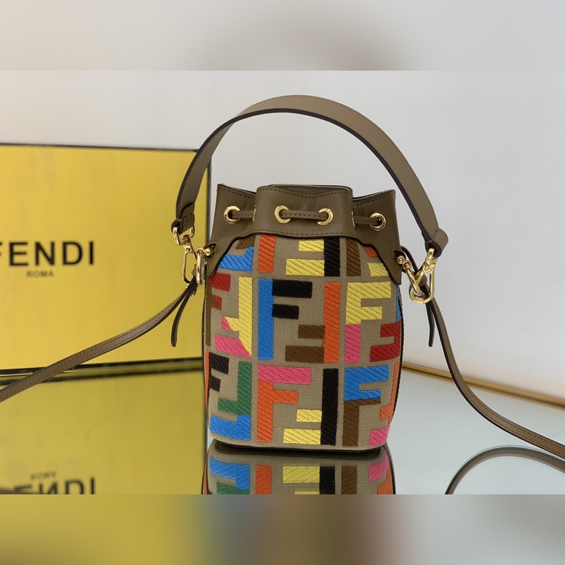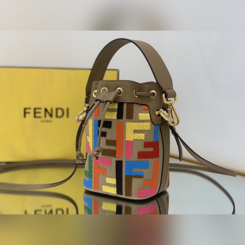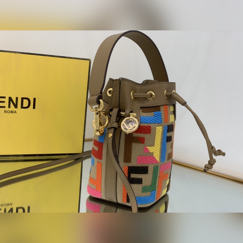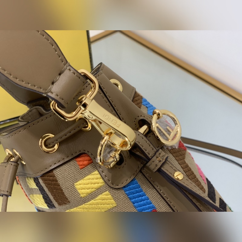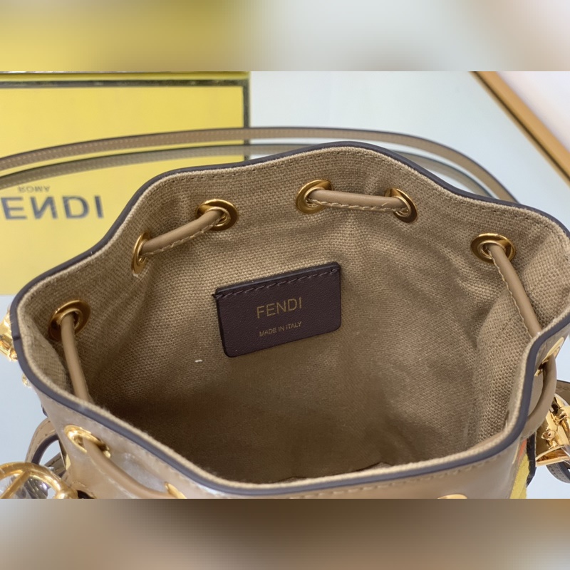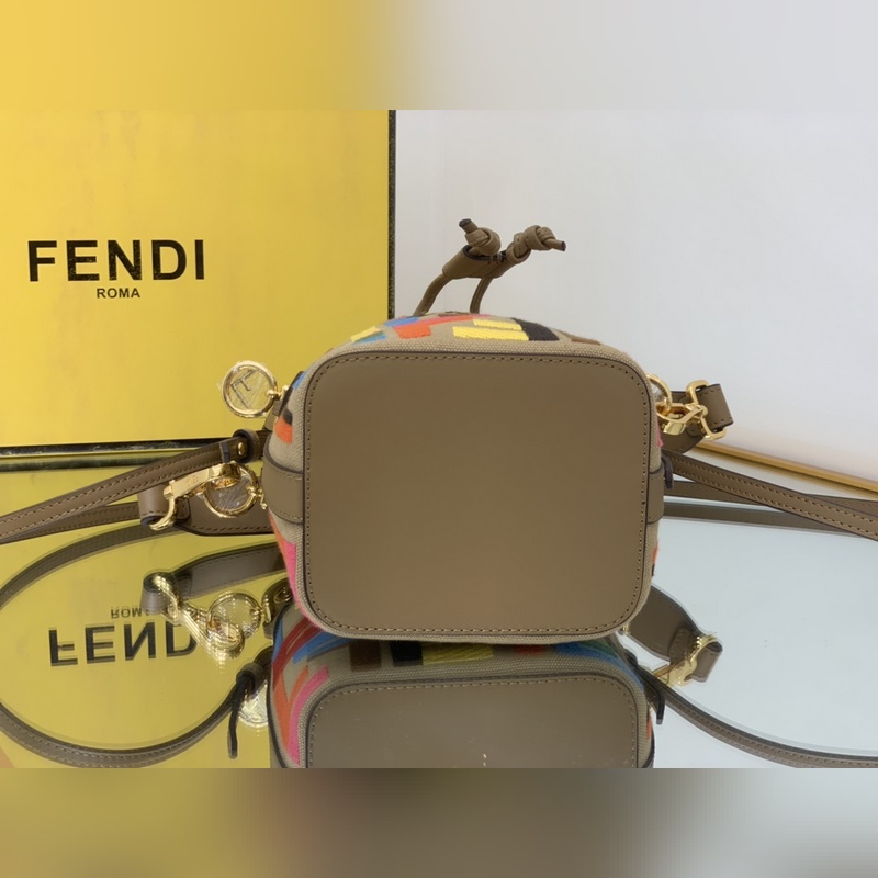 펜디 최고급 소가죽으로 만든 미니 버킷백 플란넬 브라운 패턴에 다크 브