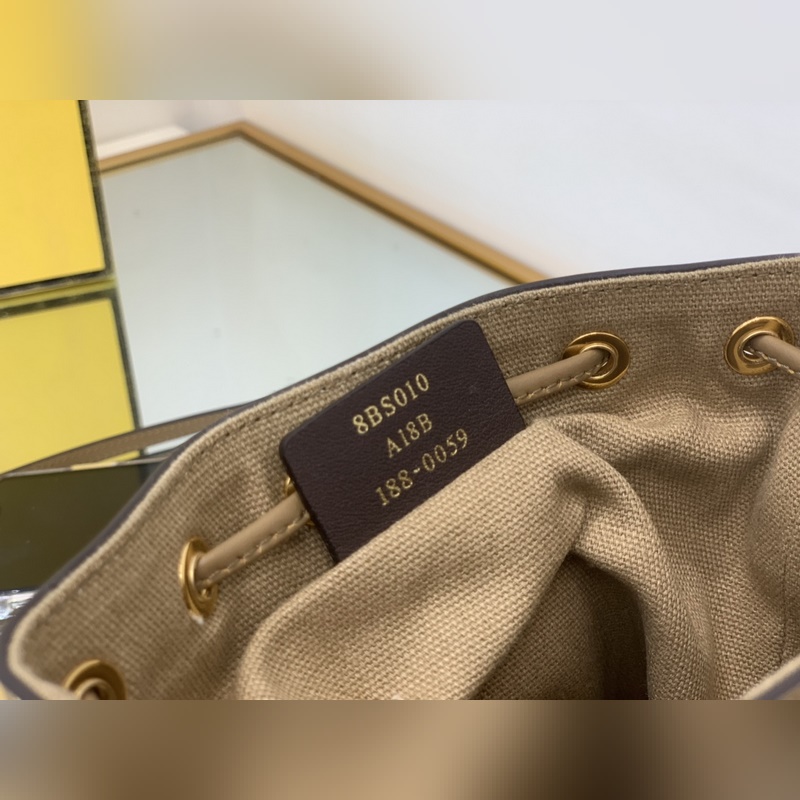 펜디 최고급 소가죽으로 만든 미니 버킷백 플란넬 브라운 패턴에 다크 브라운 가죽 트림 금색 금속 장식 안감 두 개의 탈착식 어깨 스트랩(긴 스트랩과 짧은 스트랩) 어깨에 메거나 몸에 걸칠 수 있음 크기 12*18*10cm 모델 번호: 8BS010 번호: BD96181050