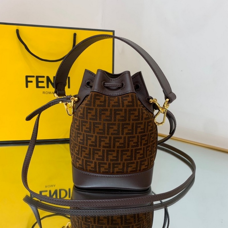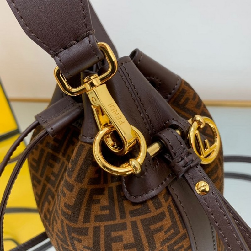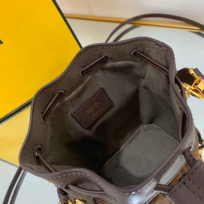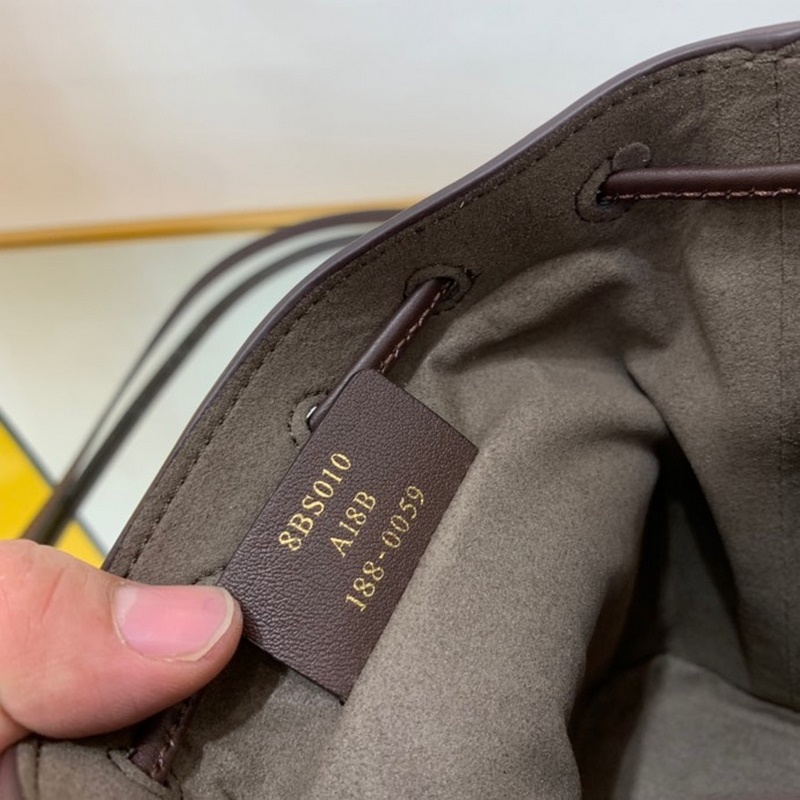 펜디 미니 버킷백 투톤 가죽 검은색과 갈색 무늬가 인쇄된 어두운 갈색 가죽으로 마감된 제품 금색 금속 장식으로 안감을 댄 제품 한쪽 어깨에 매거나 몸에 걸칠 수 있는 길이 12cm 너비 18cm 높이 10cm의 탈착식 어깨끈 1개 품번: BD96181080