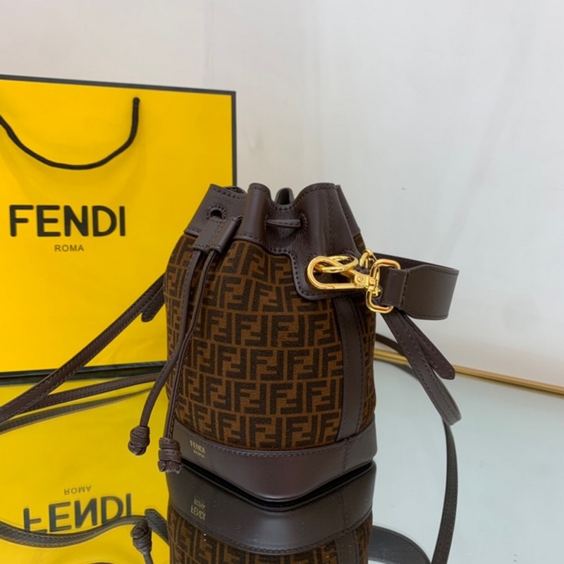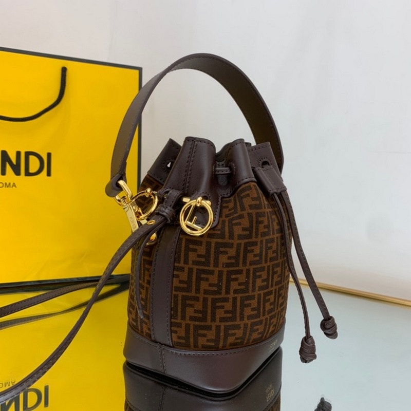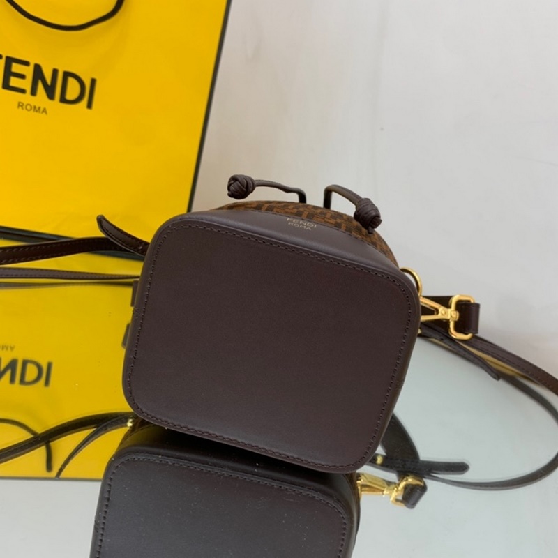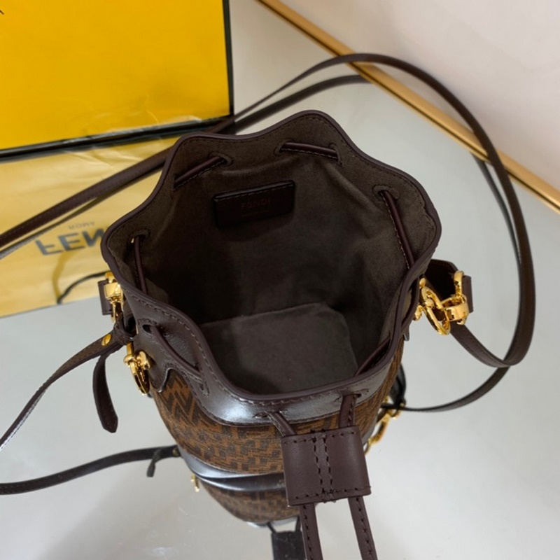 펜디 미니 버킷백 투톤 가죽 검은색과 갈색 무늬가 인쇄된 어두운 갈색