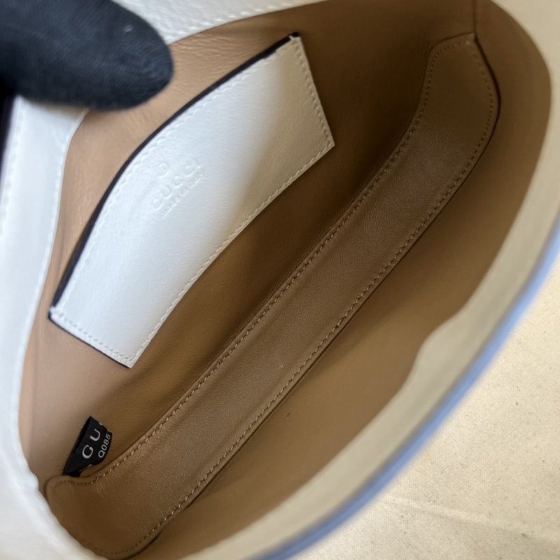 1961년 미니 숄더백은 눈부신 광택의 특허 가죽 소재로 제작된 장난스럽고 세련된 제품입니다. 1961년 미니 백은 이 반짝이는 소재를 밝은 흰색으로 해석하여 구찌 러브 행진에 또 하나의 세련된 걸작을 추가합니다. 대담한 색상 조합은 이번 시즌 패션쇼가 경의를 표하는 자기 표현을 반영합니다. 흰색 펄 가죽 골드 톤 하드웨어 손잡이 높이: 10cm 이중 G 크리스탈이 맞물리는 탈착식 체인 숄더 스트랩(높이 40cm) 푸시 락 걸쇠. 모델 번호: 699651. 미니 사이즈: 19(가로) x 13(세로) x 3cm(깊이) 색상: 화이트/특허 가죽. 이탈리아 디자인 번호: XP96181160