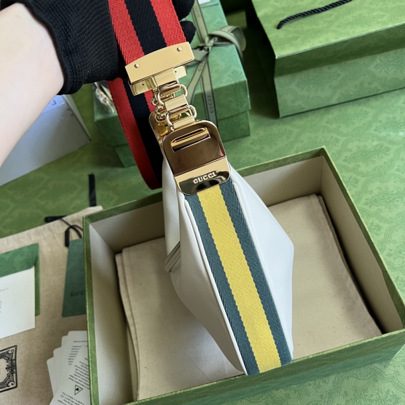 오리지널 그린 박스 포장 풀 세트 포함 구찌 러브 마치 시리즈의 작은 숄더백은 브랜드의 클래식한 요소를 새롭게 해석하여 할리우드의 영원한 매력에 경의를 표합니다. 이 액세서리는 눈에 띄는 초승달 모양을 특징으로 하며 G자형 고리 잠금 장치가 독특한 디자인 미학을 더해 줍니다. 클래식한 액세서리와 부드러운 소재의 조합으로 복고풍의 매력을 절묘하고 낭만적으로 해석합니다. 이 작은 아이템은 흰색과 흑단색 캔버스로 만들어졌으며 흰색 가죽 파이핑으로 장식되어 있습니다. 흰색과 흑단색 캔버스 팔라듐색 금속 부속품 녹색-노란색 가죽 끈 면과 린넨 안감 추가 가죽 어깨 끈 G자형 고리와 지퍼가 달린 탈착식 가죽 끈 어깨 끈(높이 45cm). 상품 번호: 699409. 크기: 23(가로) x 22(세로) x 5cm(깊이) 색상: 흰색/원래 가죽. 이탈리아 디자인 번호: XP96181280