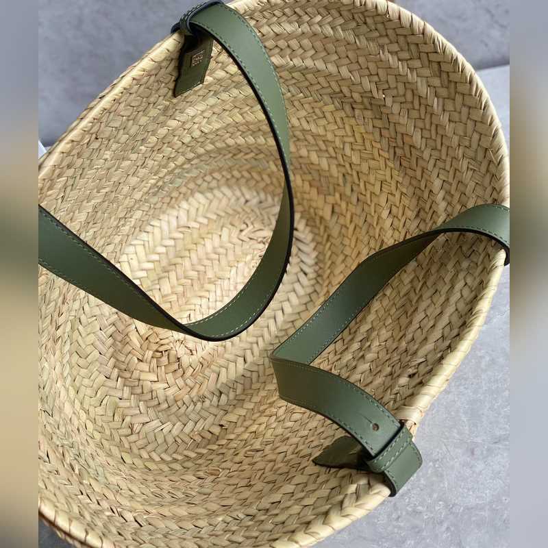 로에베 고리버들 가방 야채 바구니 새로운 색상의 아보카도 패션계의 절반을 차지함 순수한 수제 짚으로 손으로 짠 여름 필수 아이템 크기: 소형 약 32cm 번호: 10128 중형 약 40cm 번호: 10129 (수제 짚의 경우 약간의 오차가 있을 수 있습니다) 중형 세부 사항 번호: HQ96181100