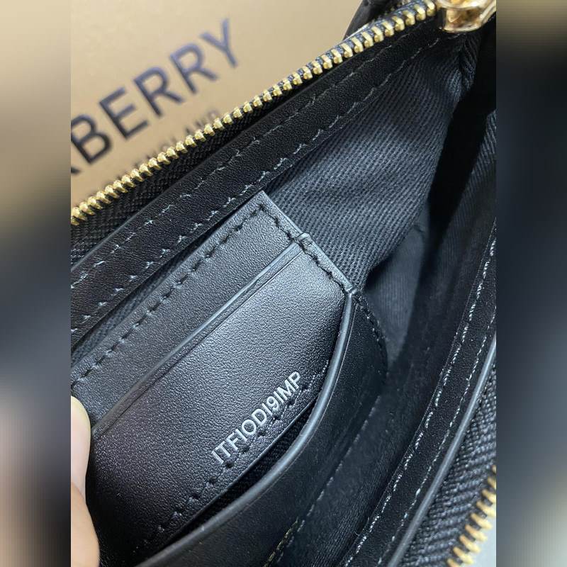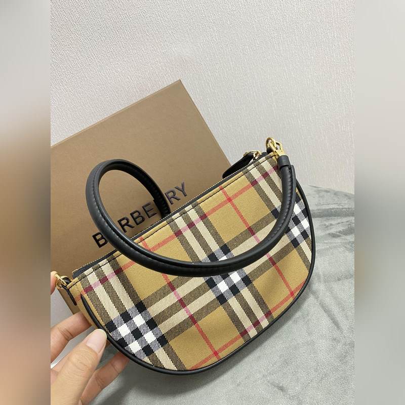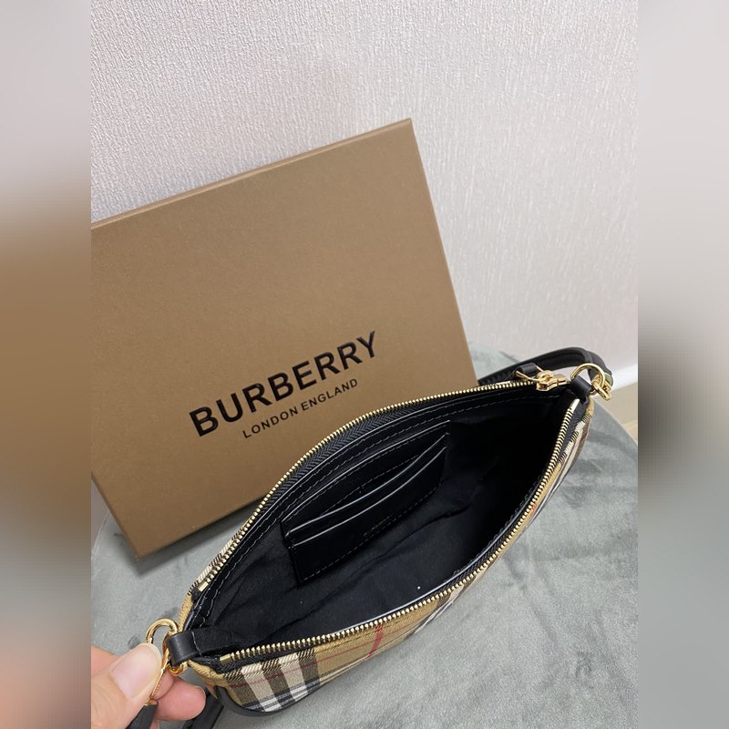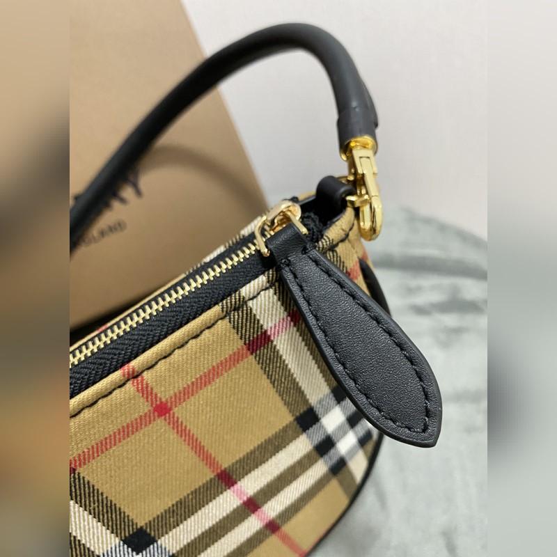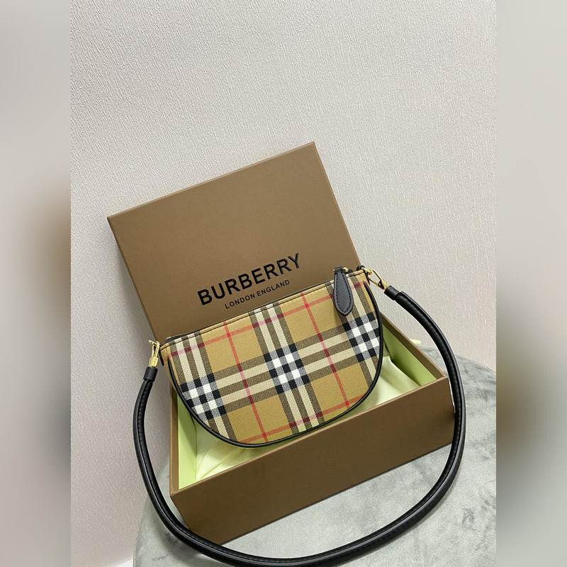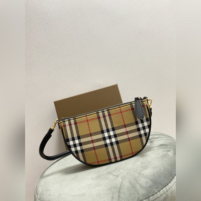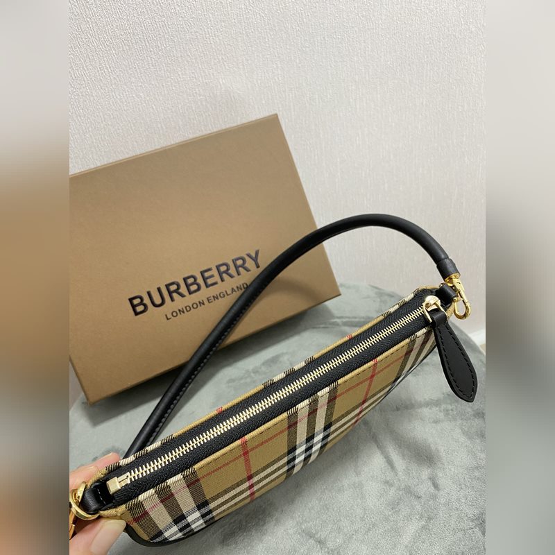 버버리의 최신 모델의 보관 가방은 빈티지 체크 무늬의 면과 가죽 소재로 만들어졌습니다. 곡선형 디자인은 브랜드의 패션쇼 장소인 런던 올림피아 전시 센터에서 영감을 받았습니다. 어깨에 메거나 스트랩을 제거하여 클러치 백으로 사용할 수 있습니다. 21 x 4 x 12.2cm 아이템 번호: YK9618810