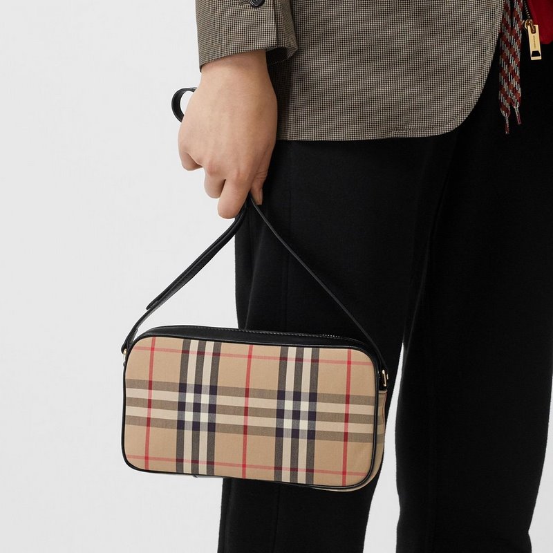 버버리 빈티지 체크 패브릭으로 만든 부드럽고 깔끔한 카메라 가방. 이탈리