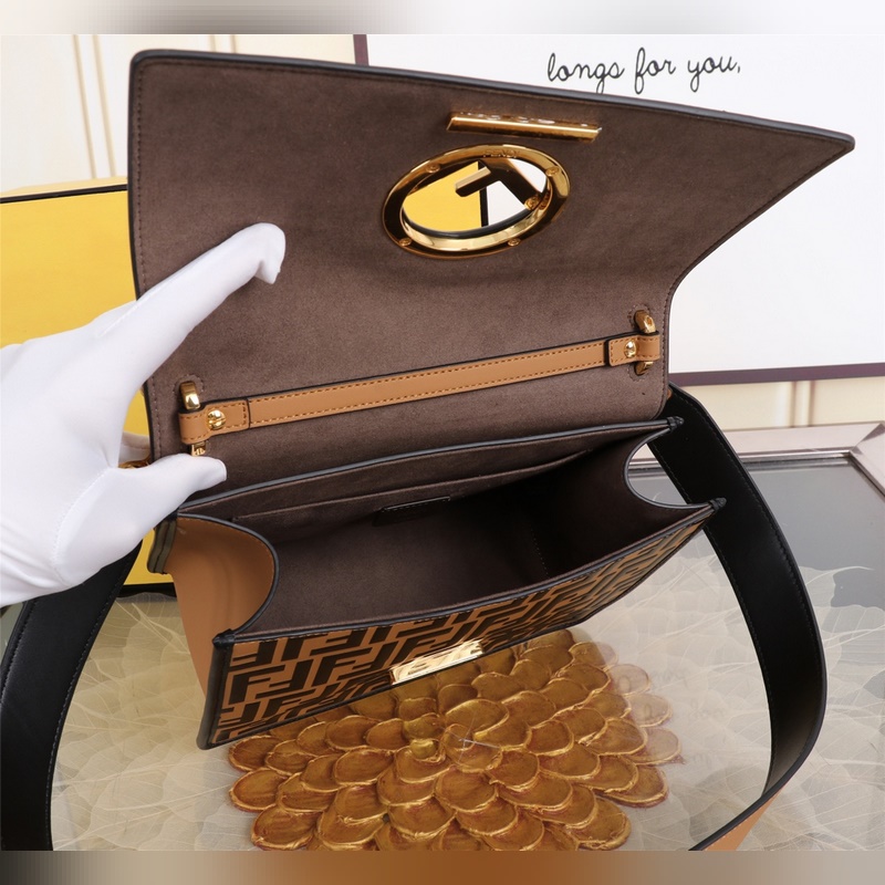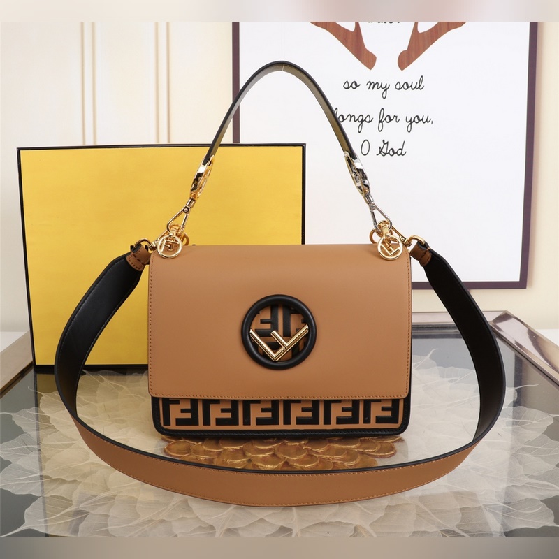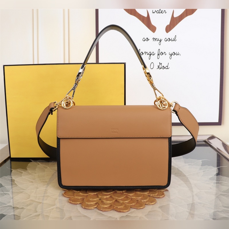 FENDI 핸드백 탄 플랩백 탈부착 가능한 어깨 스트랩이 있어 크로스 바디 또는 손에 들고 사용할 수 있으며 송아지 가죽 소재 컬러 FF 엠보싱 로고 26cm 모델 번호: 837 번호: WZ96181280