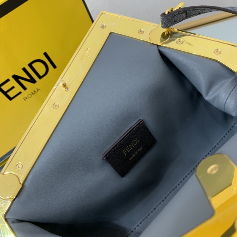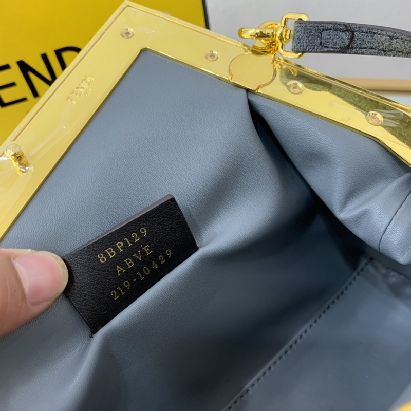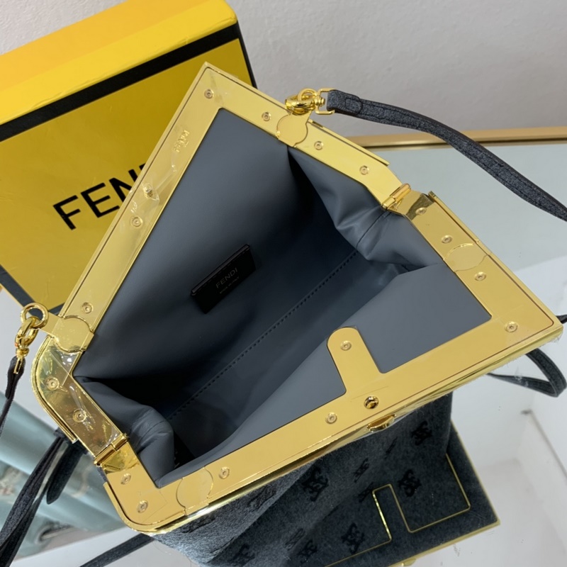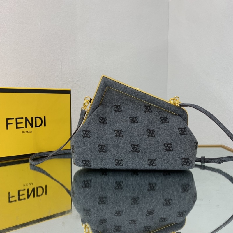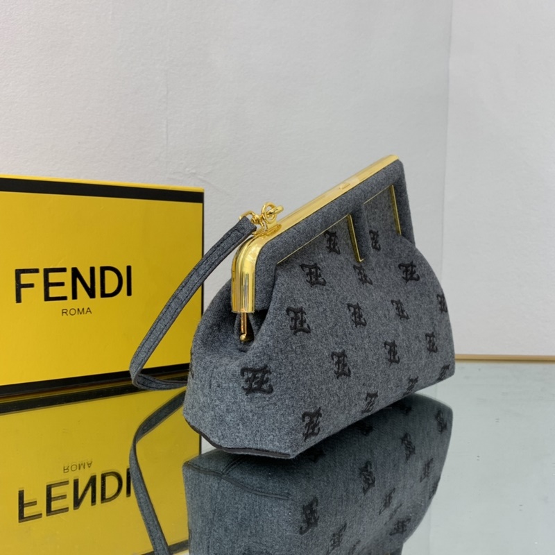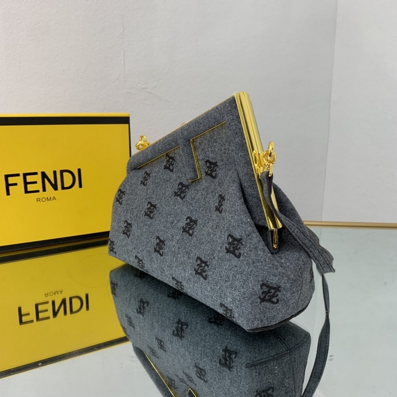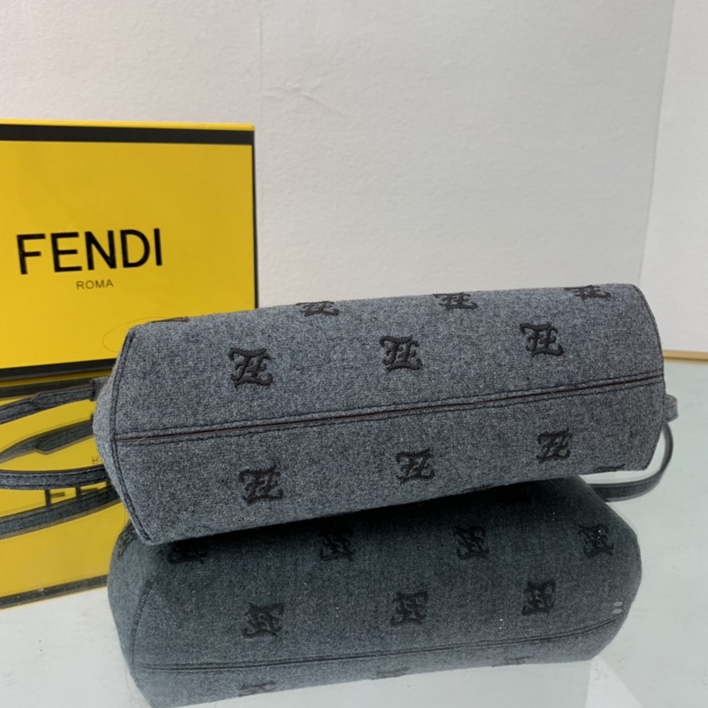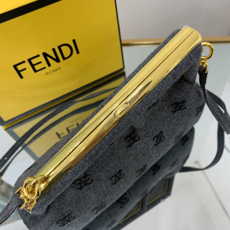 펜디 회색 플란넬로 만든 작은 가방 패턴 자수 장식 특대 금속 F자형