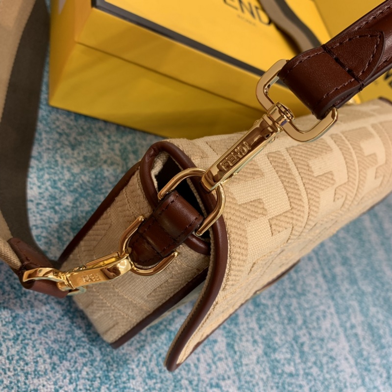 펜디 상징적인 중형 핸드백은 플랩 디자인이 특징입니다. FF 자석 걸쇠