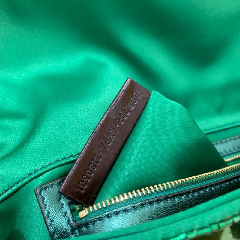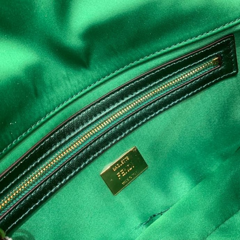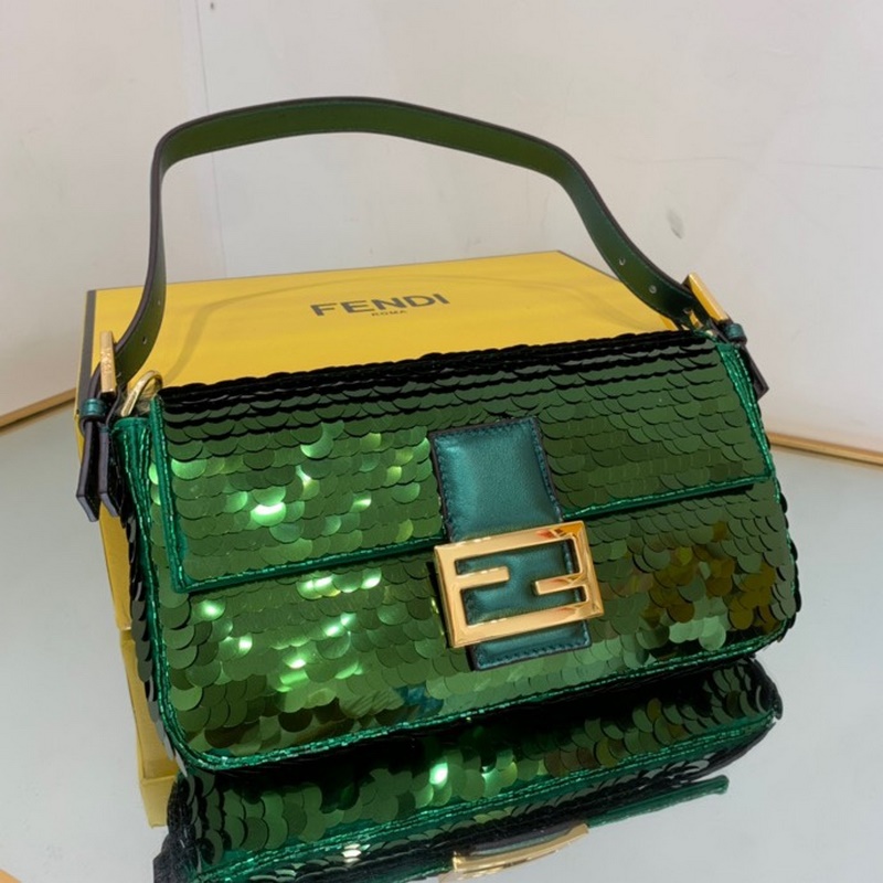 펜디 97 큰 가방 전체에 금색 금속 스팽글 자수 FF 걸쇠 이 가방은 1997년에 출시된 최초의 바게트 가방을 재해석한 것입니다. 출시 연도를 따서 명명되었습니다. 앞쪽 플랩이 있는 상징적인 언더암 디자인과 어울리는 가죽 소재의 그리고 자석 스냅 버튼 카드 홀더. 새틴 안감의 내부 수납공간은 톤이 같은 가죽 디테일과 자석 스냅 버튼 카드 홀더가 특징입니다. 가방에는 탈부착 가능한 손잡이와 측면 버클이 달려 있어 손으로 들거나 어깨에 메고 다닐 수 있습니다. 크기: 27*4*13 모델 번호: 2017 그린 비즈 No.: BD96181350
