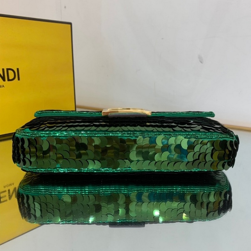 펜디 97 큰 가방 전체에 금색 금속 스팽글 자수 FF 걸쇠 이 가