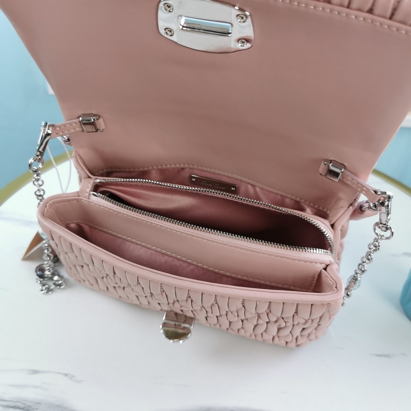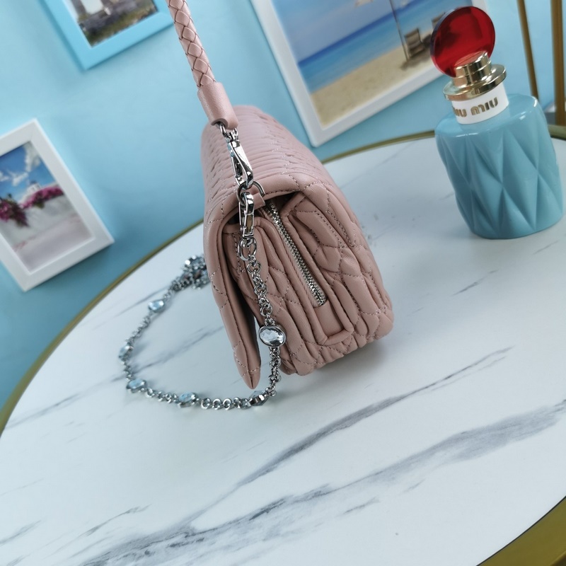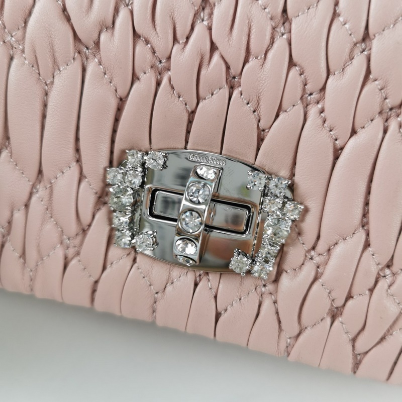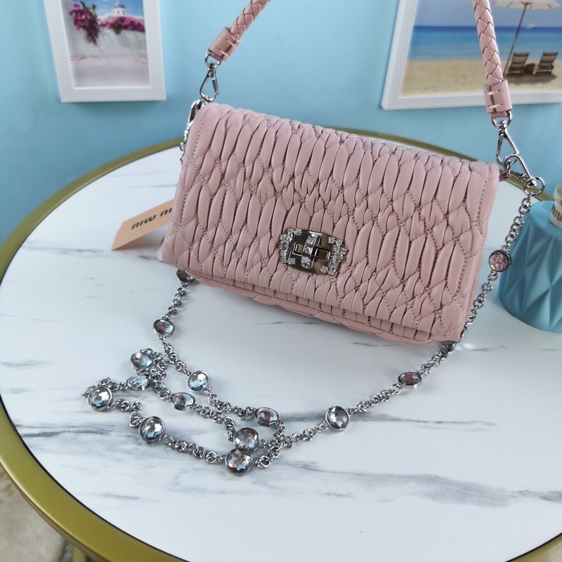 Miumiu 숄더백 연분홍색 모델 번호: 5BH012 크리스탈 장식 체