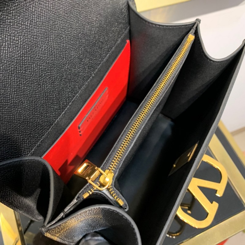 발렌티노 골드톤 손바닥 무늬가 있는 대형 송아지 가죽 숄더백 길이를