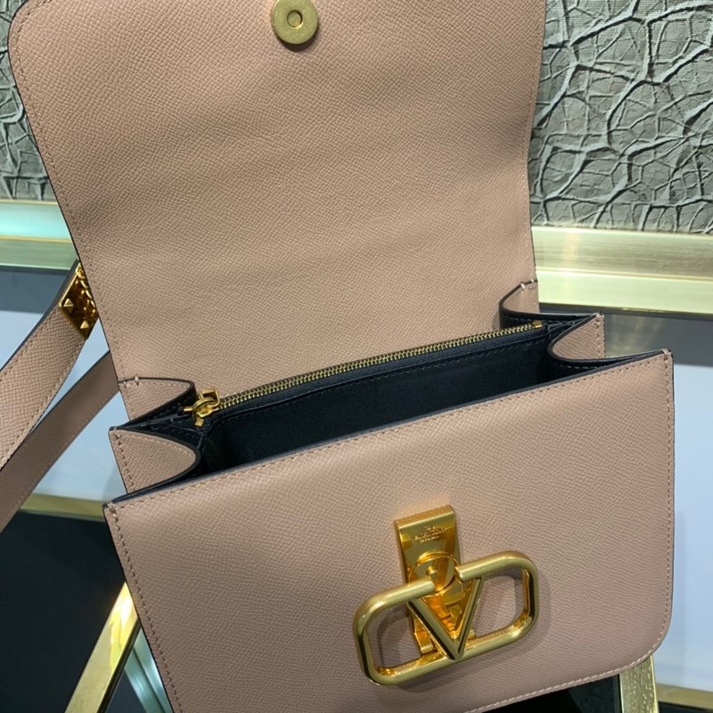 발렌티노 골드톤 손바닥 무늬가 있는 대형 송아지 가죽 숄더백 길이를