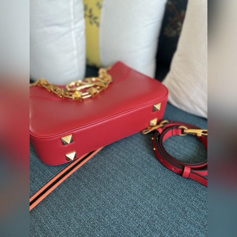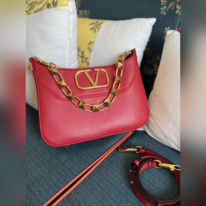 발렌티노 체인 어깨끈과 조절 가능한 가죽 어깨끈 크로스백 - 빈티지 브라스 마감 - 자석 걸쇠 - 탈착식 가죽 손잡이 - 탈착식 체인 스트랩이 달린 어깨 끈 - 조절 가능하고 탈부착이 가능한 가죽 어깨끈 - 보호 바닥 디자인 - 부드러운 가죽 안감 내부: 슬립 포켓 1개 - 크기: 가로 28cm x 세로 22cm x 높이 8cm - 이탈리아산 - 품목 번호: XW2B0K28VNLHG5 스타일 번호: 0028 번호: SX96181320