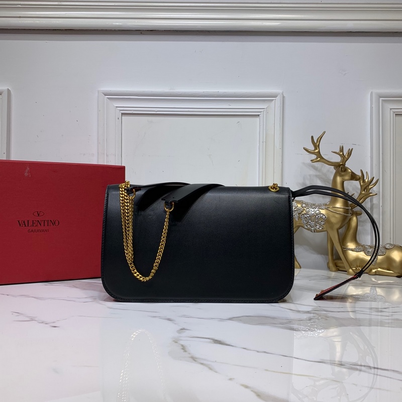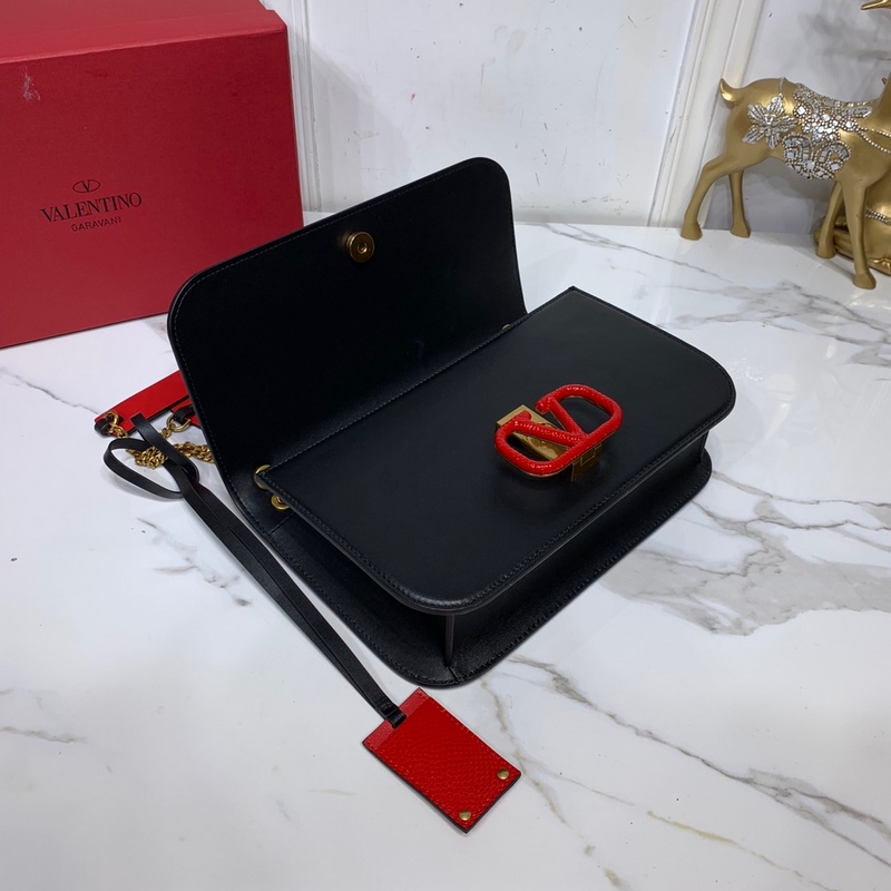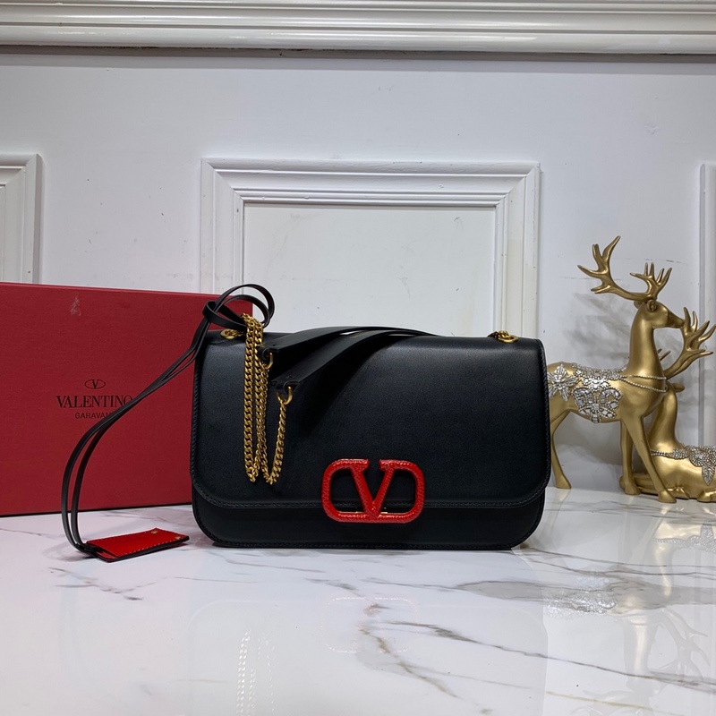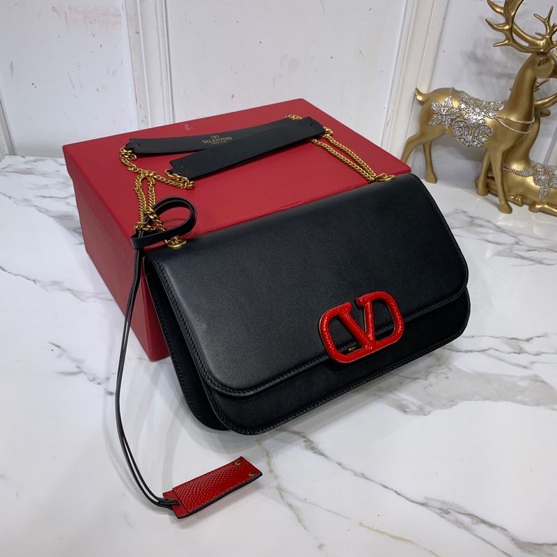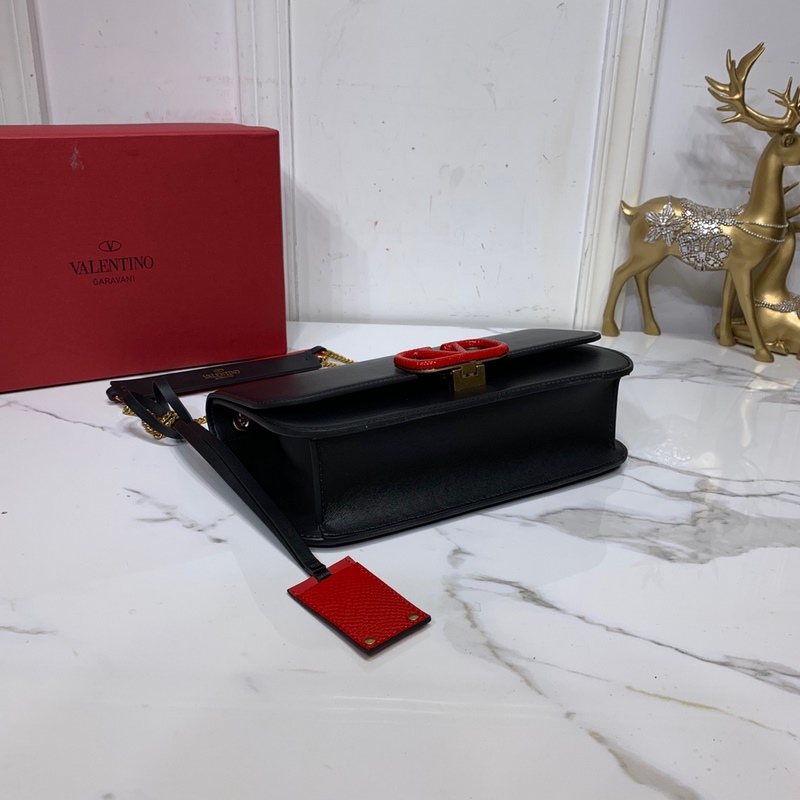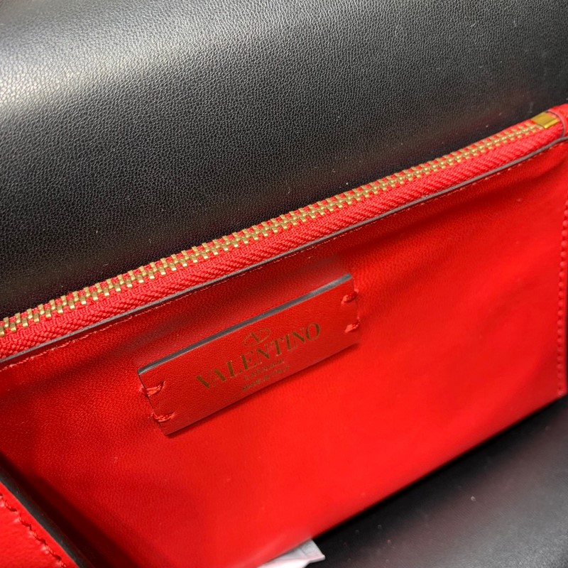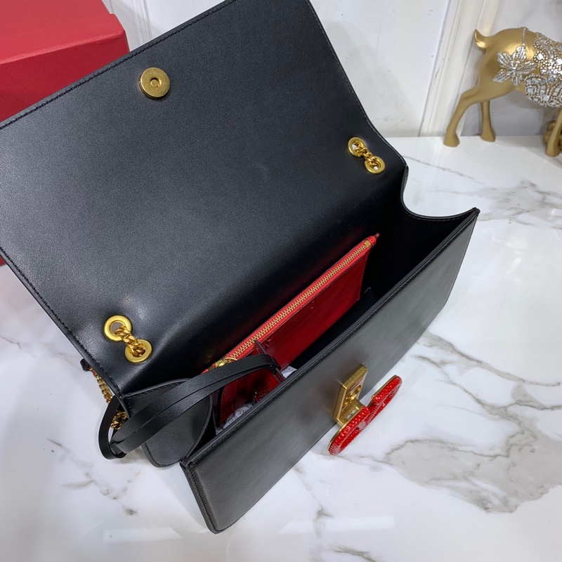 발렌티노 큰 검은색에 빨간 버클 이 CLOCK s-size 가죽 숄더백