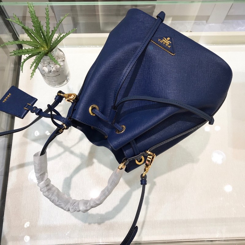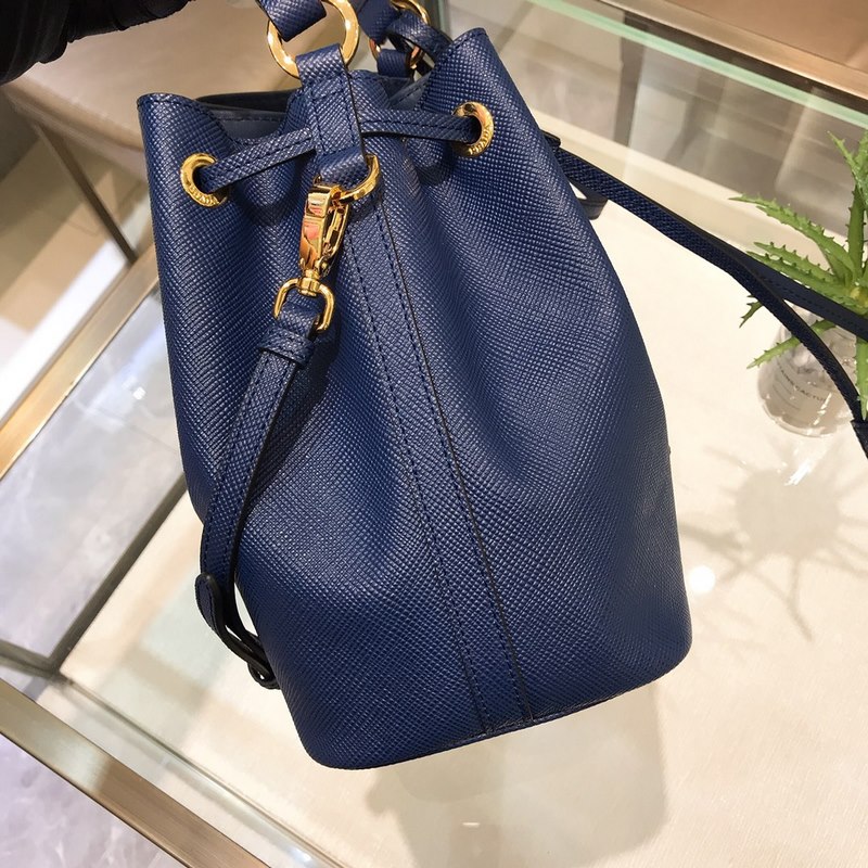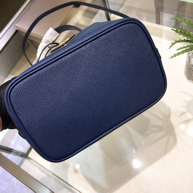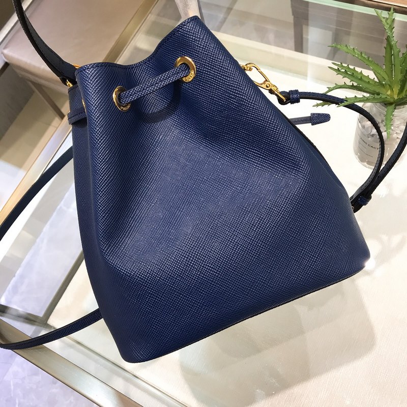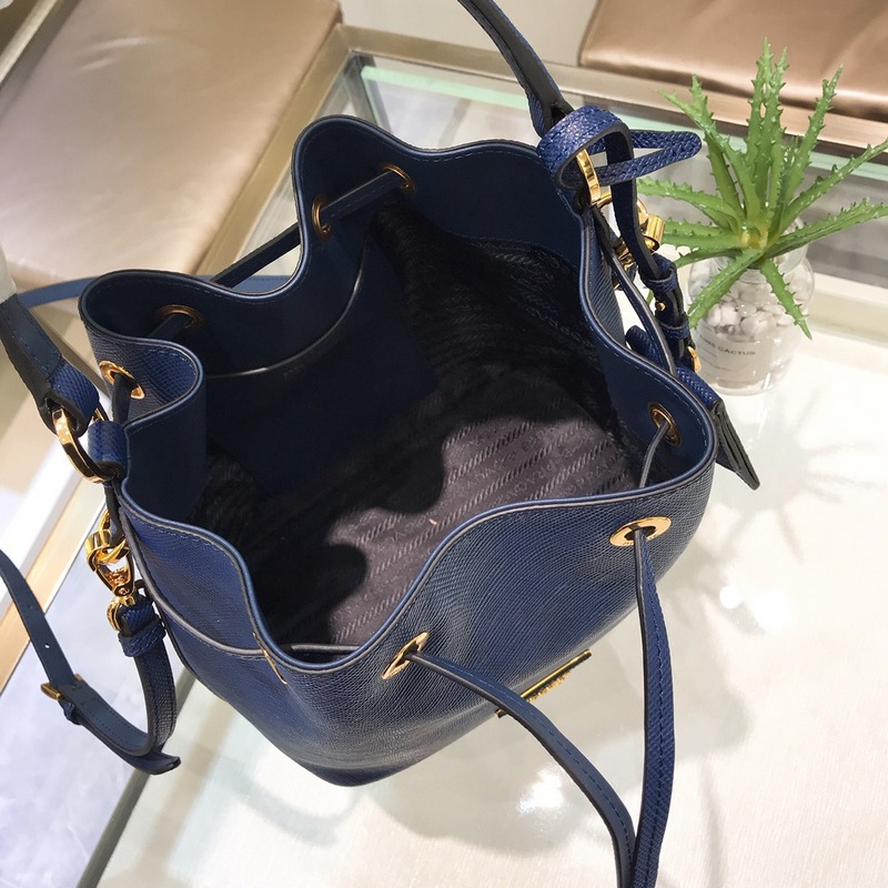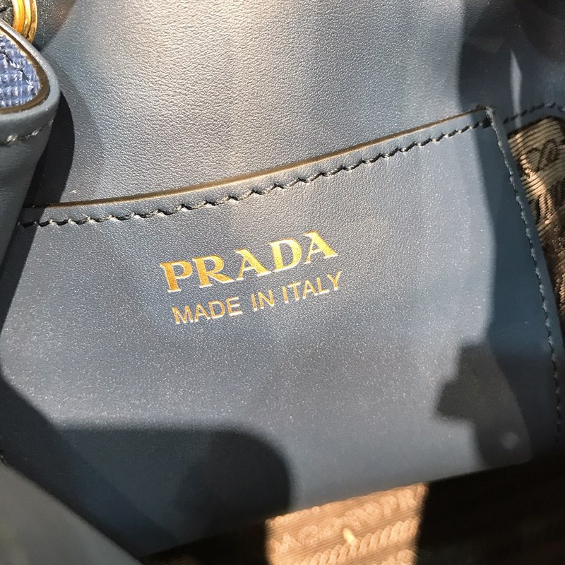 프라다 모델 번호: 1BE032 (버킷백) P의 새로운 버킷백 클래식한 삼각형 로고와 글자 십자무늬 소가죽은 질기며 질감이 좋습니다. 안감은 부드럽고 섬세한 양가죽으로 만들어졌습니다. 끈으로 묶는 디자인과 넉넉한 용량 크기: 22*22*14cm 파란색 No.: SG96181160
