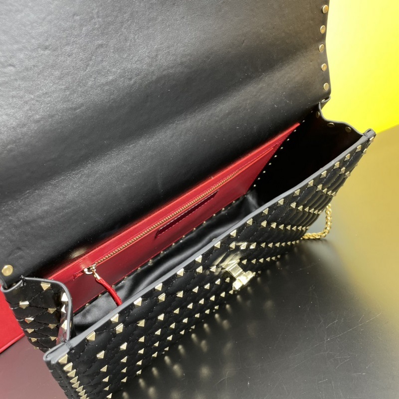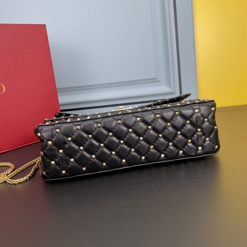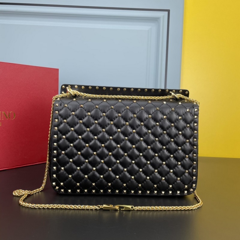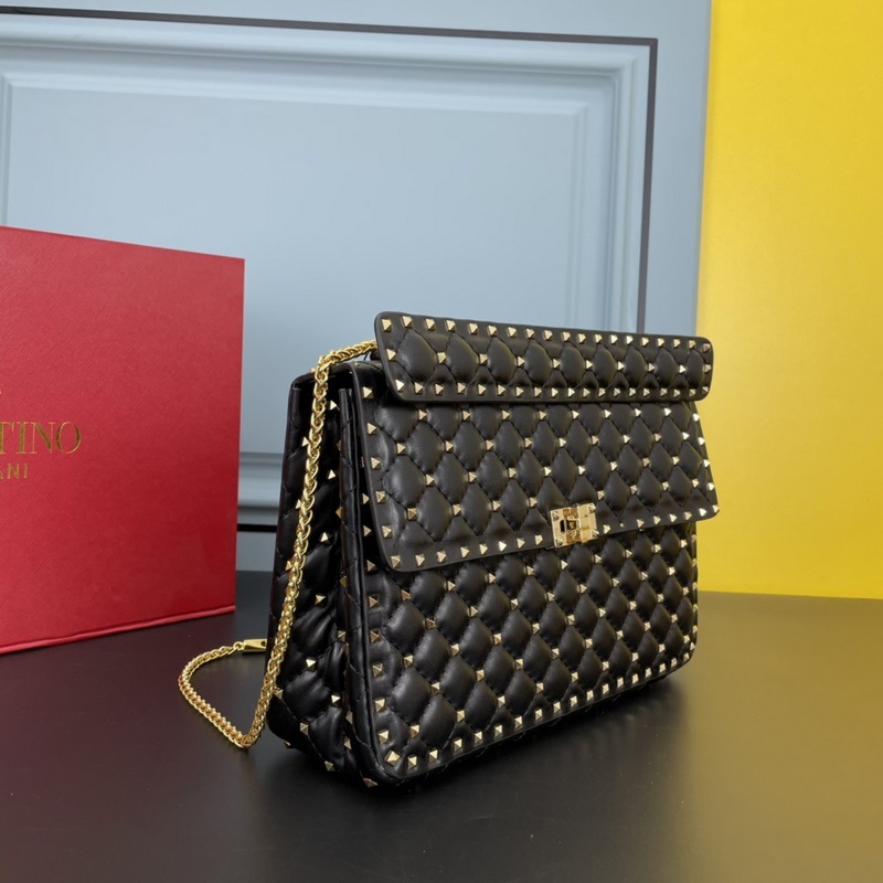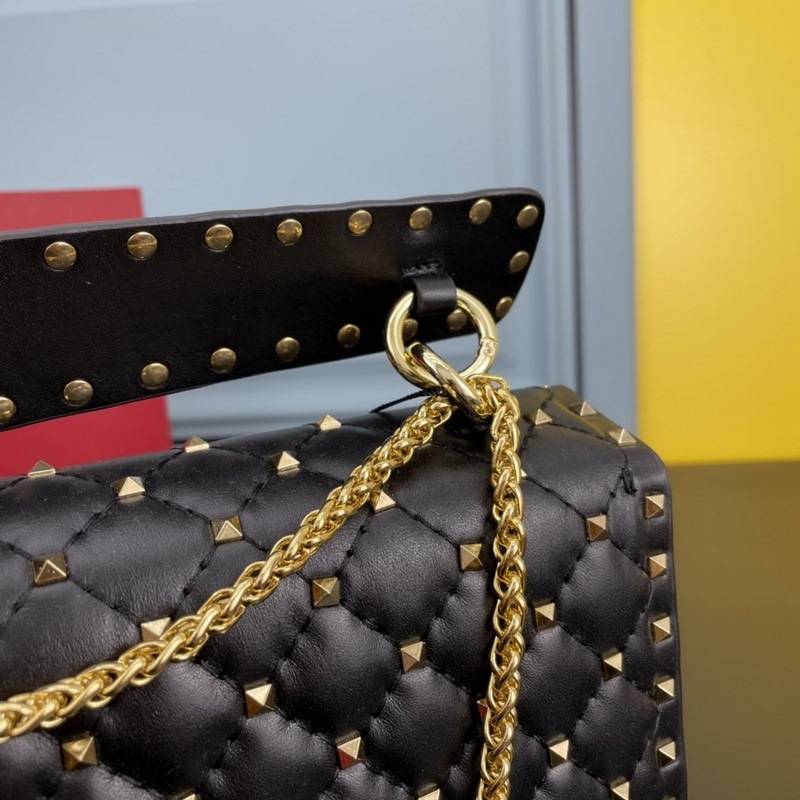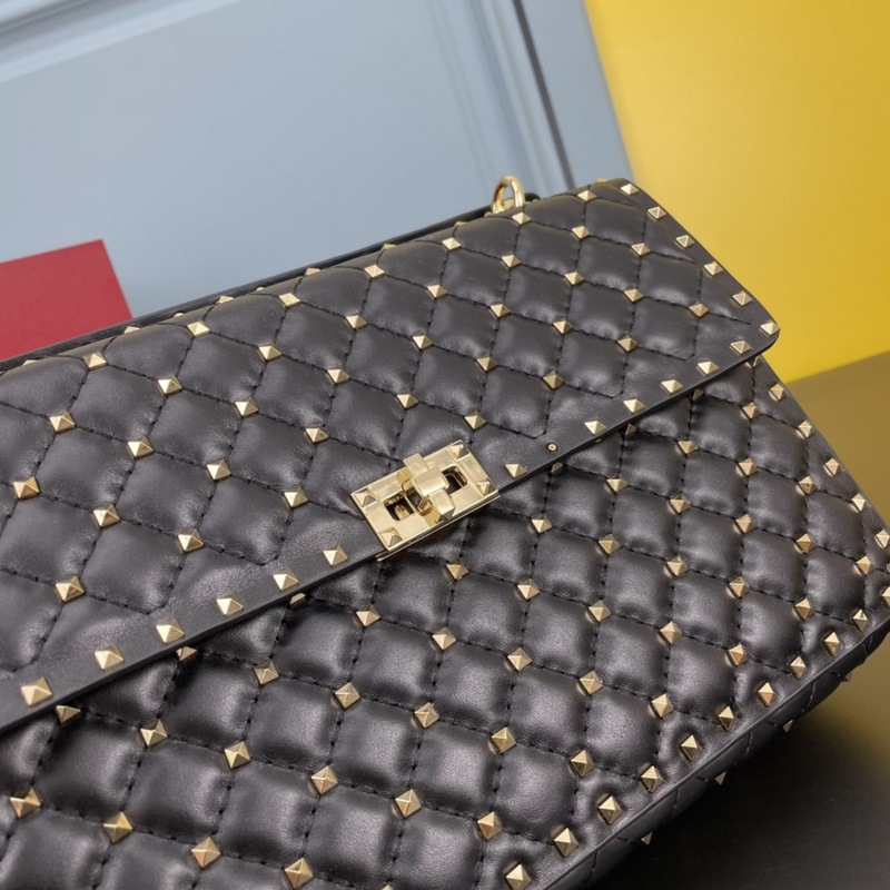 발렌티노 모델 여성용 숄더백 GARAVANI ROCKSTUD SPIKE 가방은 부드러운 양가죽으로 만든 퀼팅 자수 정교한 세공 그리고 양가죽 내부에 장착된 미니어처 리벳으로 구성되어 있습니다. 탈착식 핸들 슬라이더와 탈착식 타로 체인을 사용하여 어깨에 메거나 크로스 바디로 메거나 발렌티노 핸들로 운반할 수 있습니다. 크기: 30*8.5*20cm
