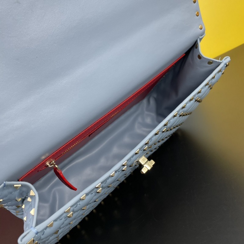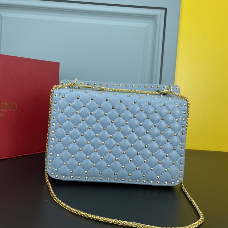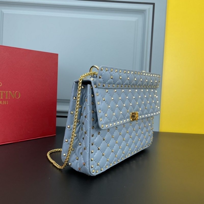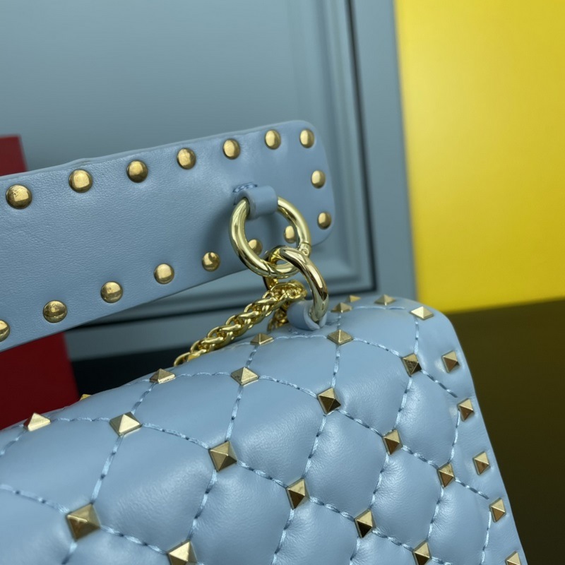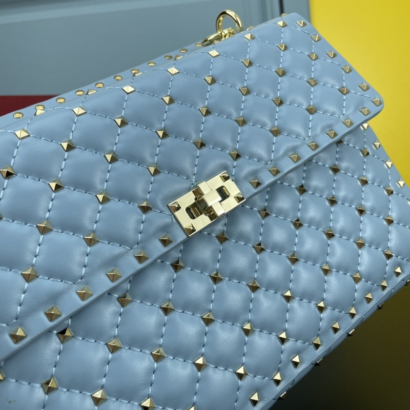 발렌티노 모델 여성용 숄더백 GARAVANI ROCKSTUD SPIKE 가방은 부드러운 양가죽으로 만든 퀼팅 자수 정교한 세공 그리고 양가죽 내부에 장착된 미니어처 리벳으로 구성되어 있습니다. 탈착식 핸들 슬라이더와 탈착식 타로 체인을 사용하여 어깨에 메거나 크로스 바디로 메거나 발렌티노 핸들로 운반할 수 있습니다. 크기: 30*8.5*20cm
