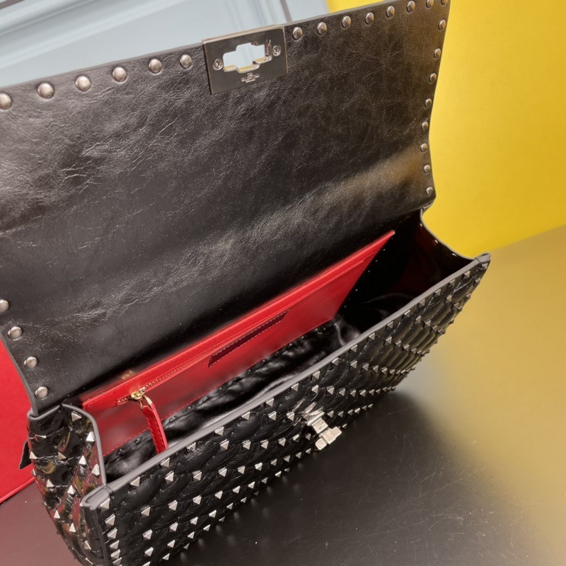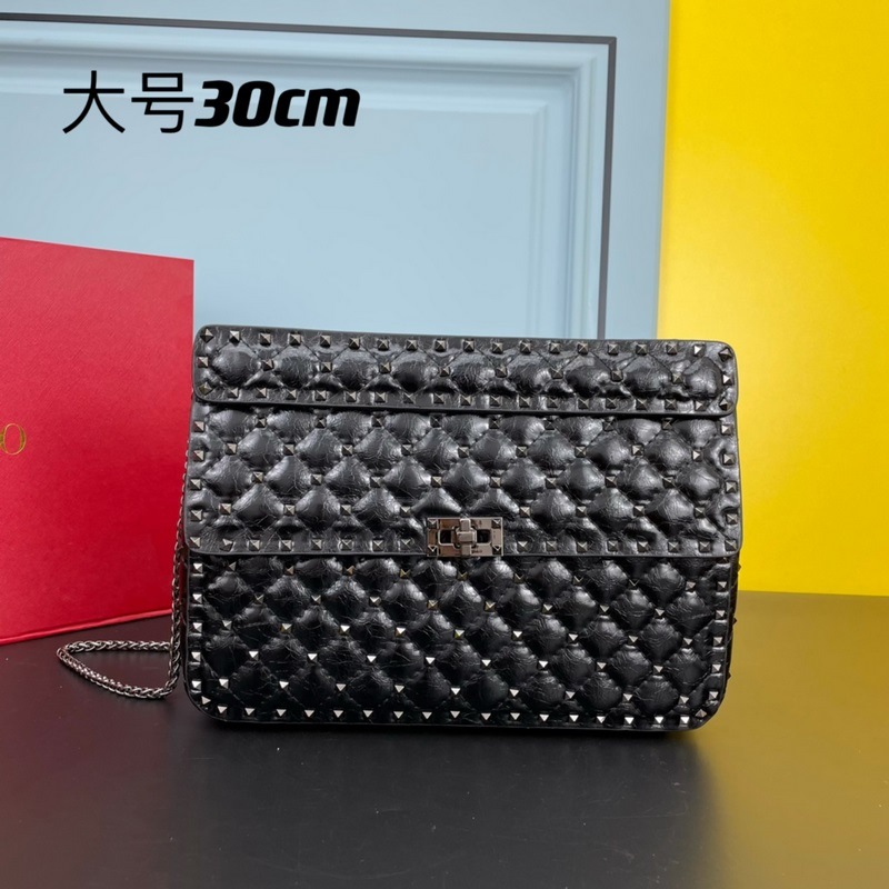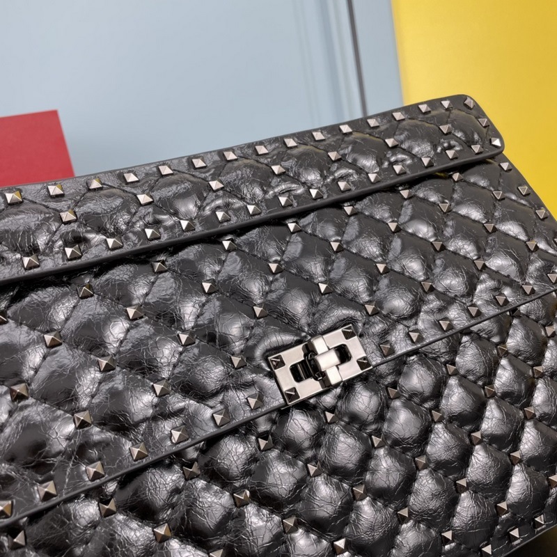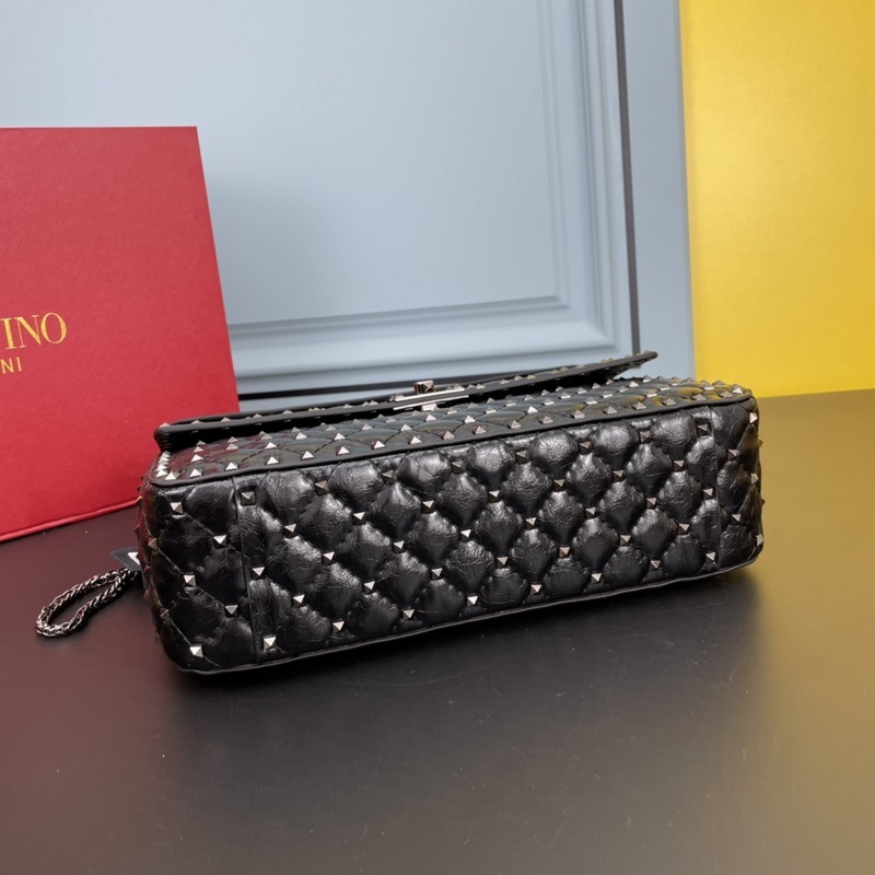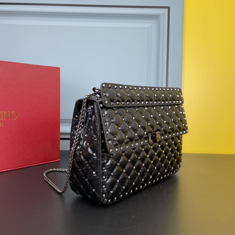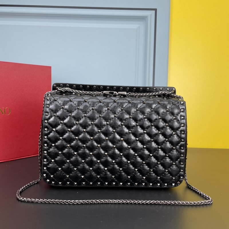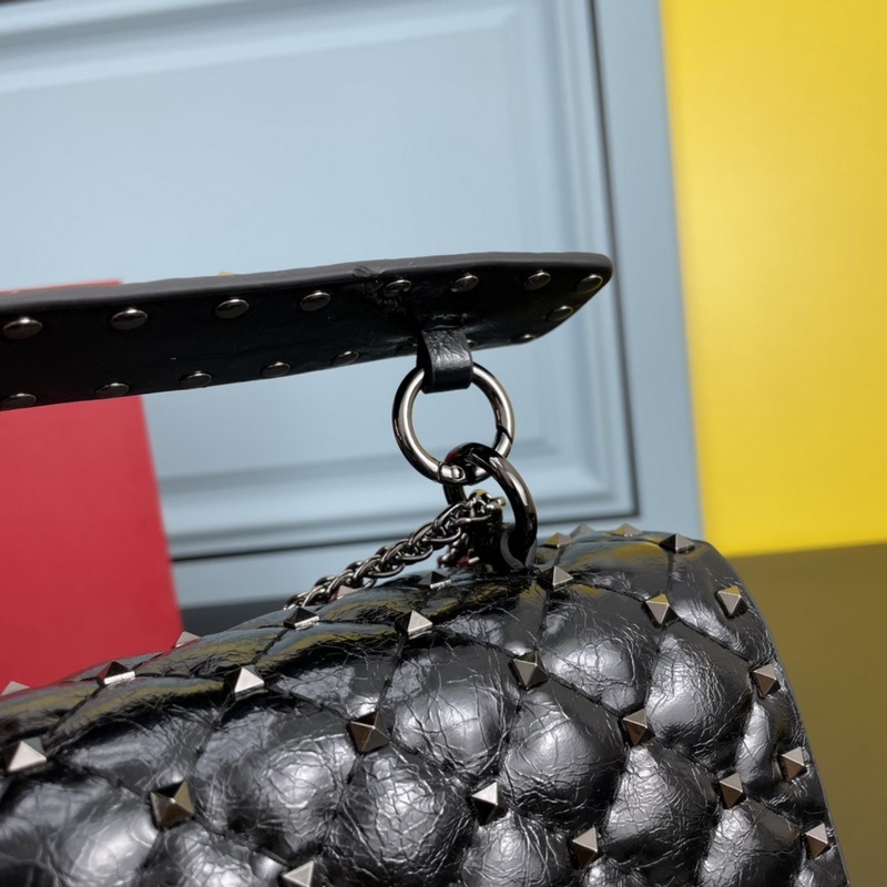 발렌티노 모델 여성용 숄더백 GARAVANI ROCKSTUD SPIKE 가방은 부드러운 양가죽으로 만든 퀼팅 자수 정교한 세공 그리고 양가죽 내부에 장착된 미니어처 리벳으로 구성되어 있습니다. 탈착식 핸들 슬라이더와 탈착식 타로 체인을 사용하여 어깨에 메거나 크로스 바디로 메거나 발렌티노 핸들로 운반할 수 있습니다. 크기: 30*8.5*20cm