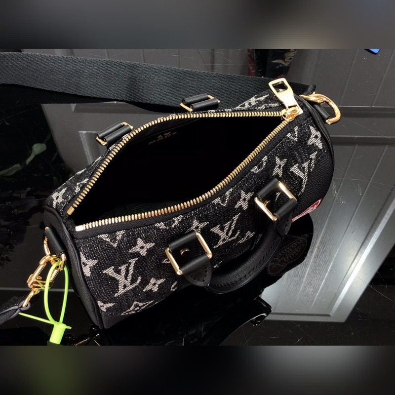LV KEEPALL XS 가방 숄더백 2022년 초봄 클래식한 Keepall 백의 포켓 버전과 일본 스트리트웨어 디자이너 니고의 모노그램 드립 요소가 만났습니다. 상징적인 모노그램 패턴이 캐주얼한 데님에 펼쳐져 있고 부드러운 타우리옹 소가죽과 조화를 이루며 하트 로고가 색다른 느낌을 더합니다. 크기: 21 x 12 x 9cm
