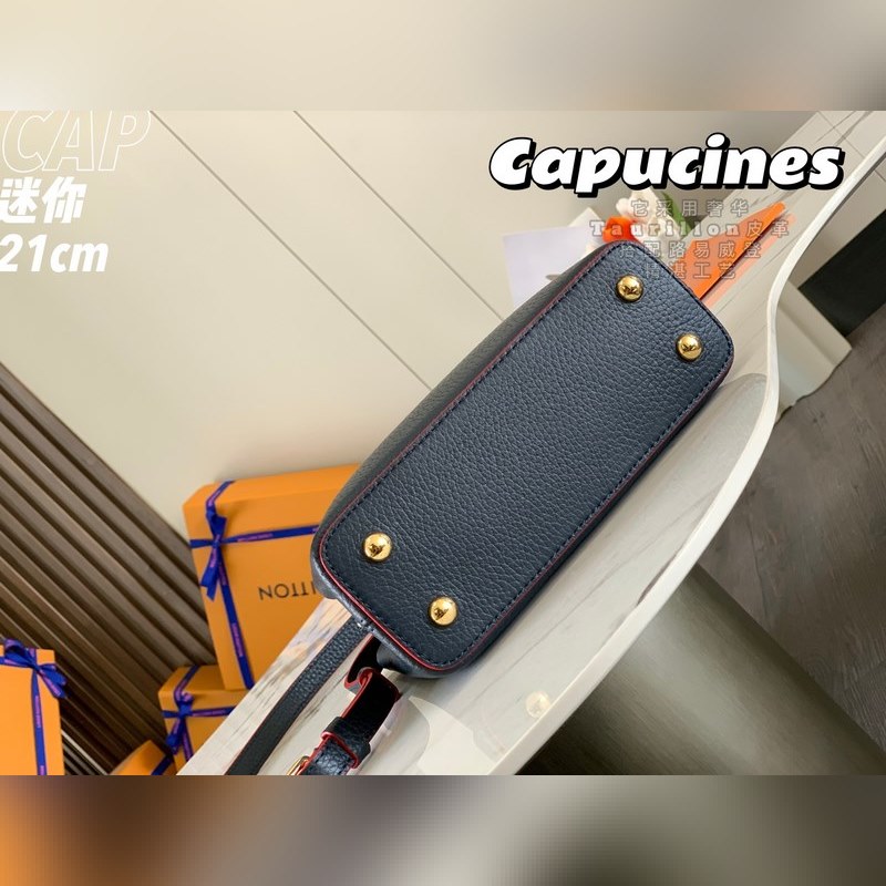 LV Capucines 미니 백 모델 M92822 네이비 블루와 골드 버