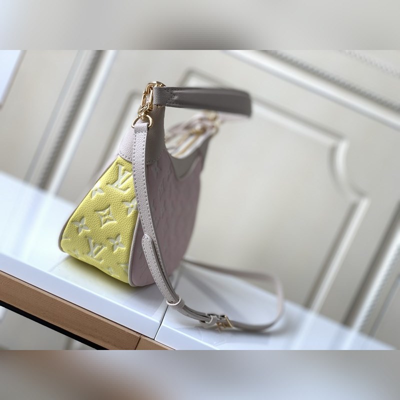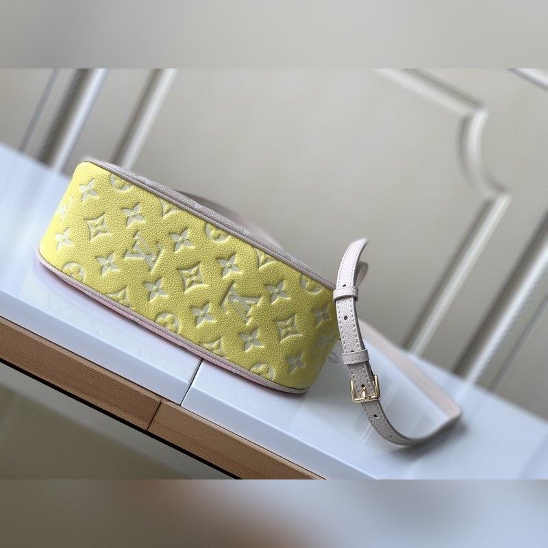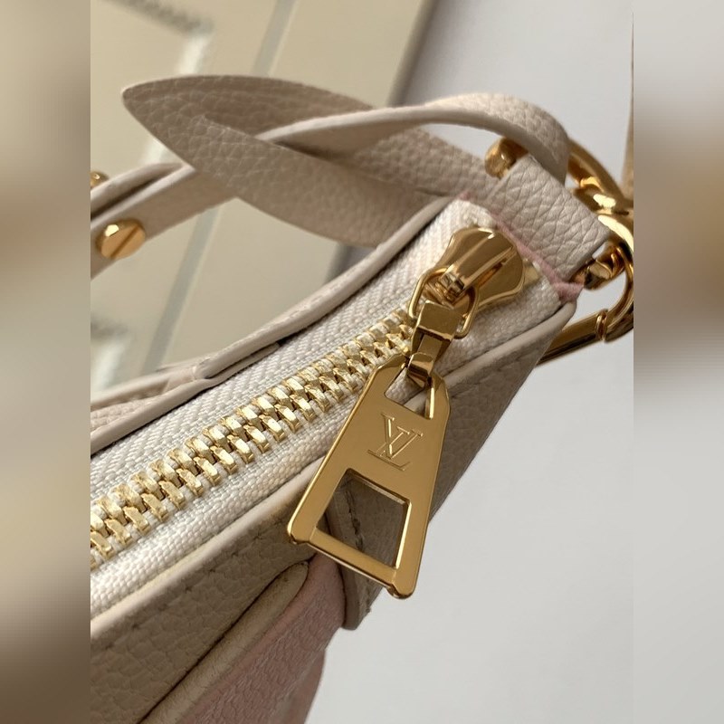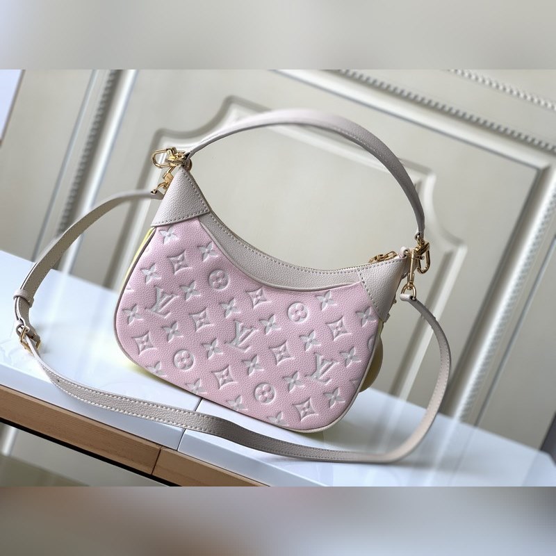 LV 바가텔 핸드백 모델 46113 핑크 이 Bagatelle 핸드백은 모노그램 앙프렝뜨 소프트 그레인 가죽으로 만들어졌으며 대비되는 색상의 큰 엠보싱 패턴이 특징입니다. 탈착식 손잡이와 길이 조절이 가능한 탈착식 어깨끈으로 트렌디한 스타일로 휴대할 수 있습니다. 크기 22 x 14 x 9cm(길이 x 높이 x 너비)