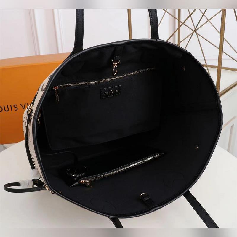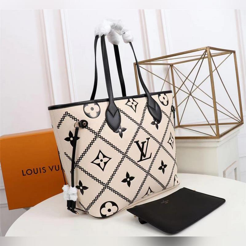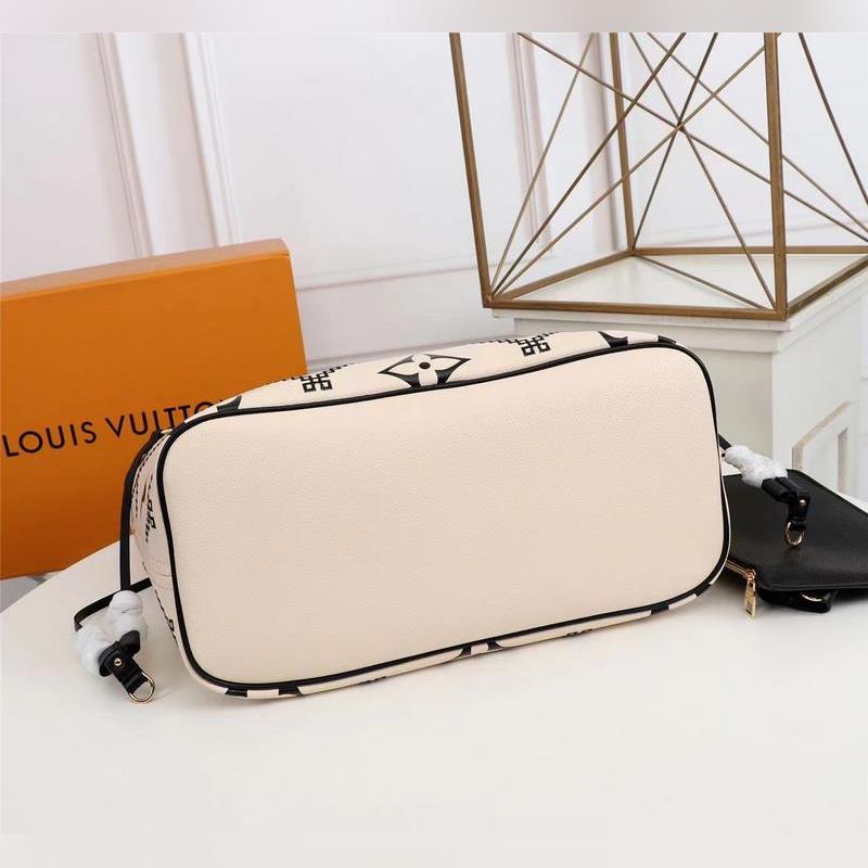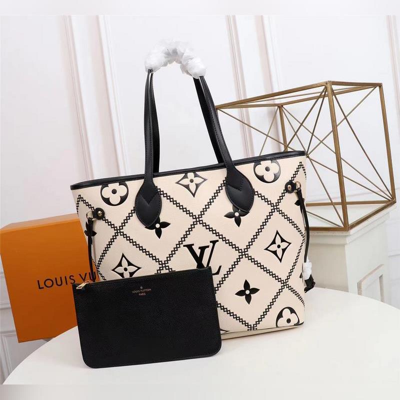 LV 모델 46040 투톤 자수 토트백 핸드백 숄더백 2022 봄 컬렉션 네버풀 핸드백은 루이 비통의 전통적인 여행 가방의 말타쥬 안감과 같이 독특한 무늬의 프린트 엠보싱 자수 등 모노그램 앙프렝뜨 가죽으로 만들어졌습니다. 크기 31 x 28 x 14cm(길이 x 높이 x 너비)