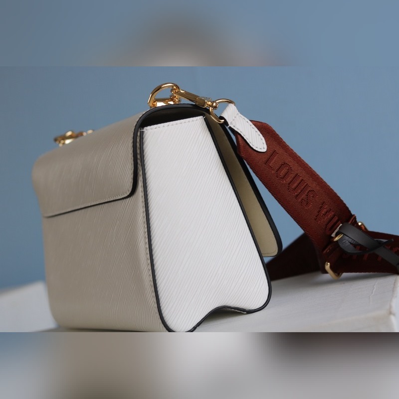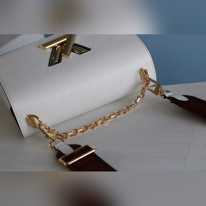 LV TWIST 중형 가방 이 세련된 작은 핸드백에는 비밀이 있습니다: 보기보다 훨씬 큽니다. 정교하게 디자인된 골판지 바닥은 필수품을 위한 추가 공간을 제공합니다. 대조적인 색상의 태그가 달린 새로운 세밀한 짠 어깨끈! 어깨끈은 몸에 걸치거나 어깨에 걸치거나 또는 어깨에 우아하게 매달 수 있습니다! 짧은 핸드 체인도 함께 제공됩니다! 다양한 방법으로 착용할 수 있습니다! 크기 23*18*8cm
