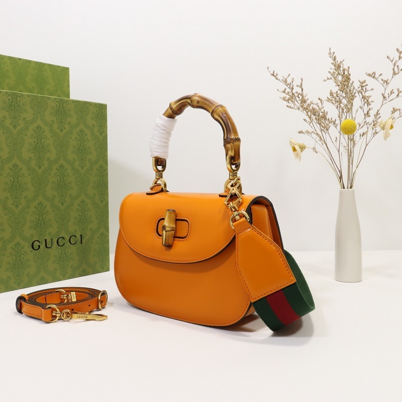GUCCI 클래식 대나무 가방 숄더백 모델 번호: 675797 옐로우 가죽 크기: W21 x H15 x D7cm