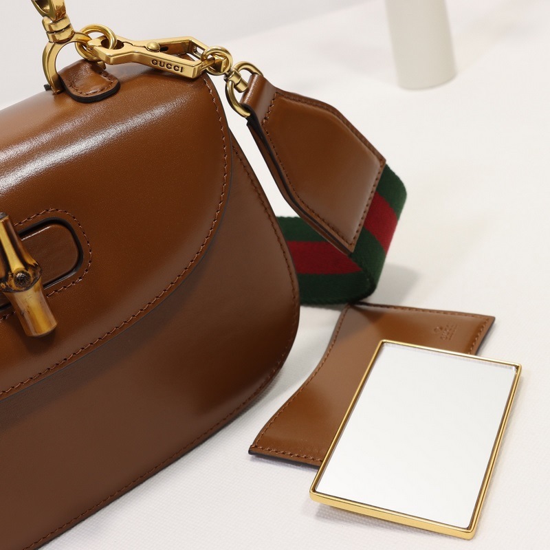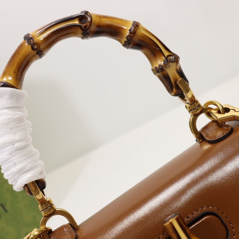 GUCCI 클래식 대나무 가방 숄더백 모델 번호: 675797 브라운 가죽 크기: W21 x H15 x D7 cm