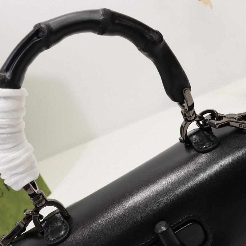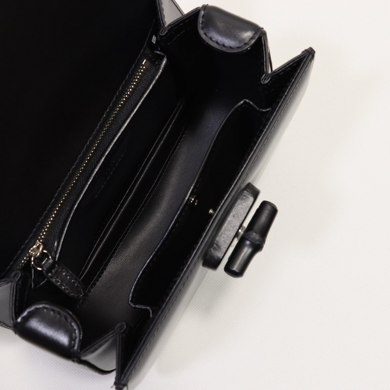 GUCCI 클래식 대나무 가방 숄더백 모델 번호: 675797 블랙 가죽 크기: W21 x H15 x D7cm