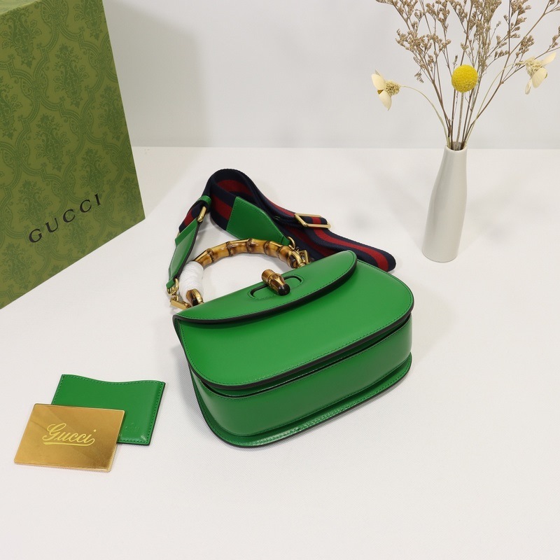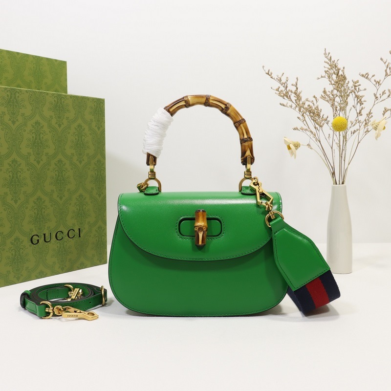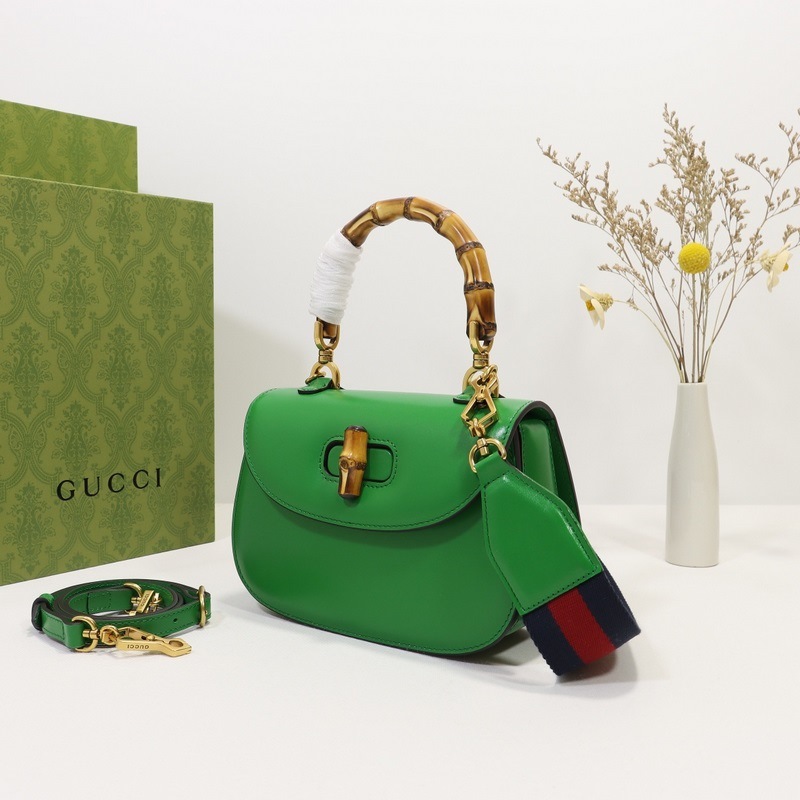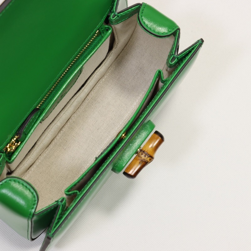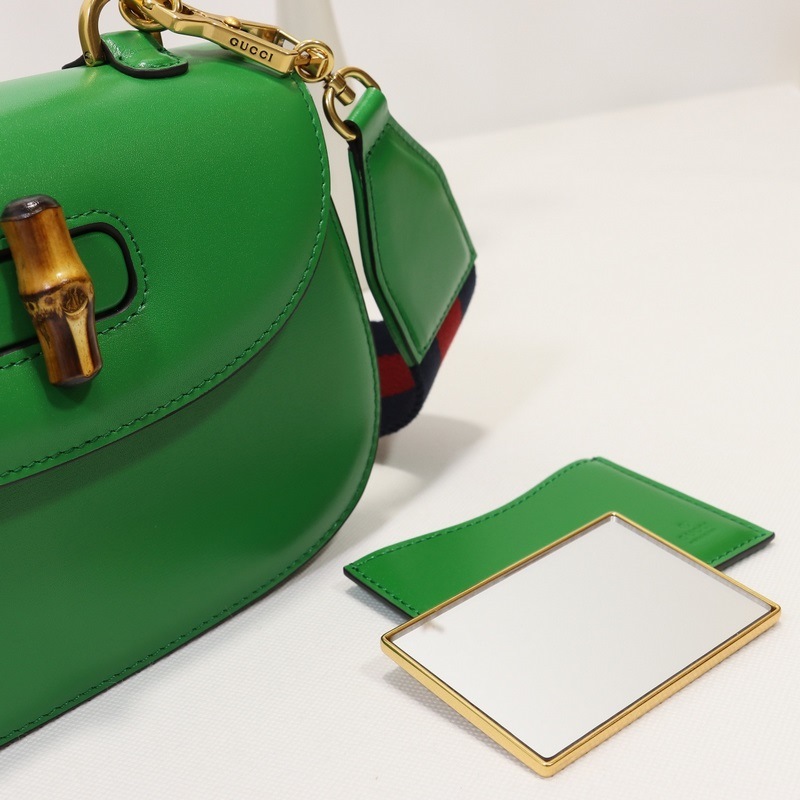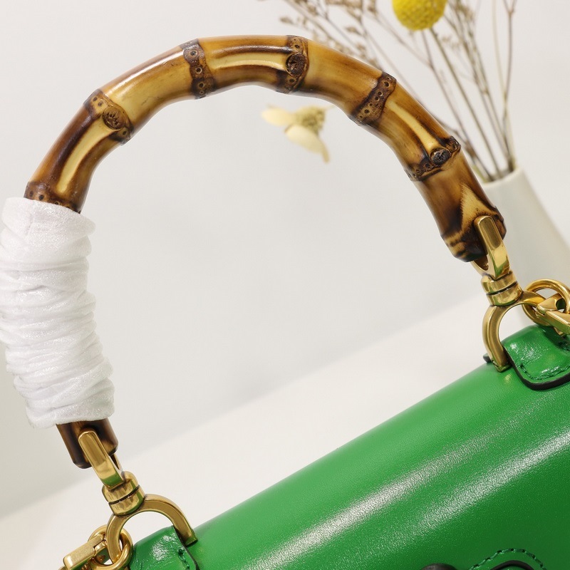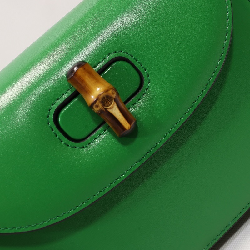GUCCI 클래식 대나무 가방 숄더백 모델 번호: 675797 그린 가죽 크기: W21 x H15 x D7 cm