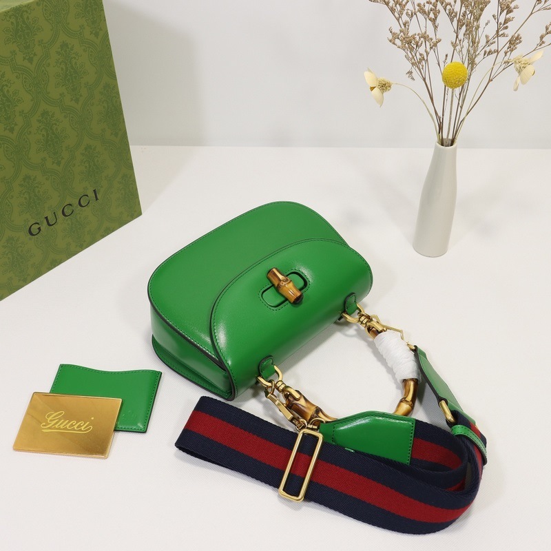 GUCCI 클래식 대나무 가방 숄더백 모델 번호: 675797 그린 가죽