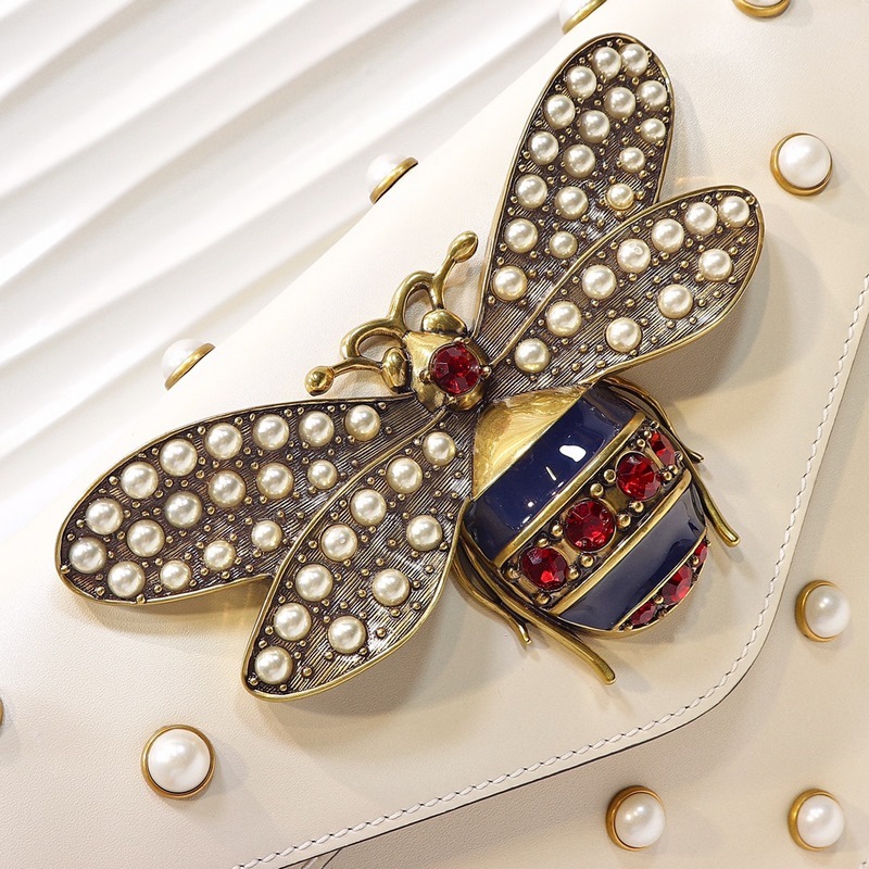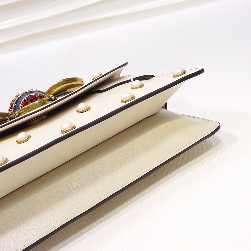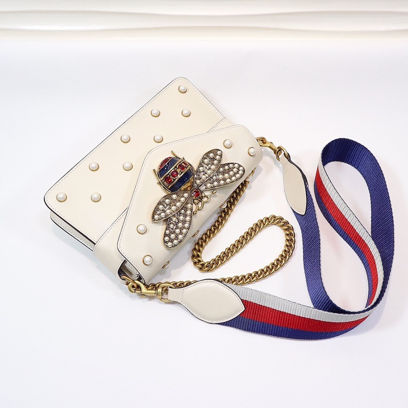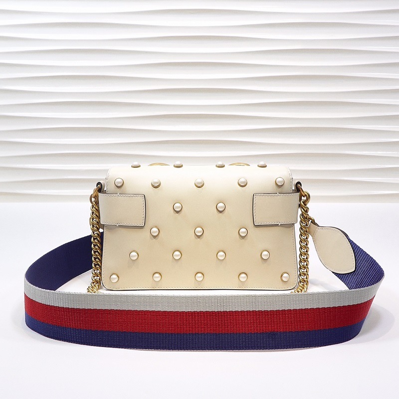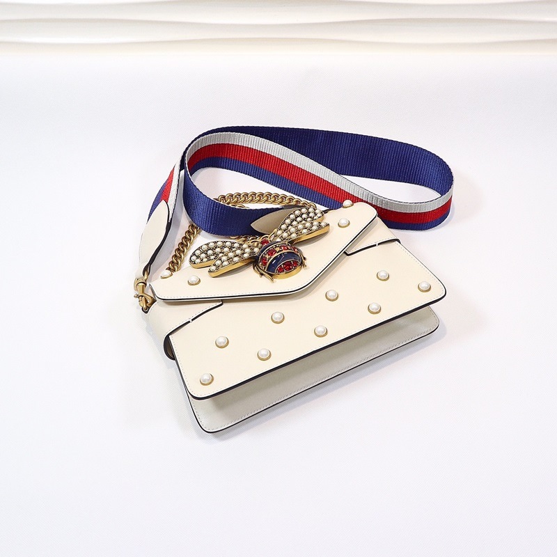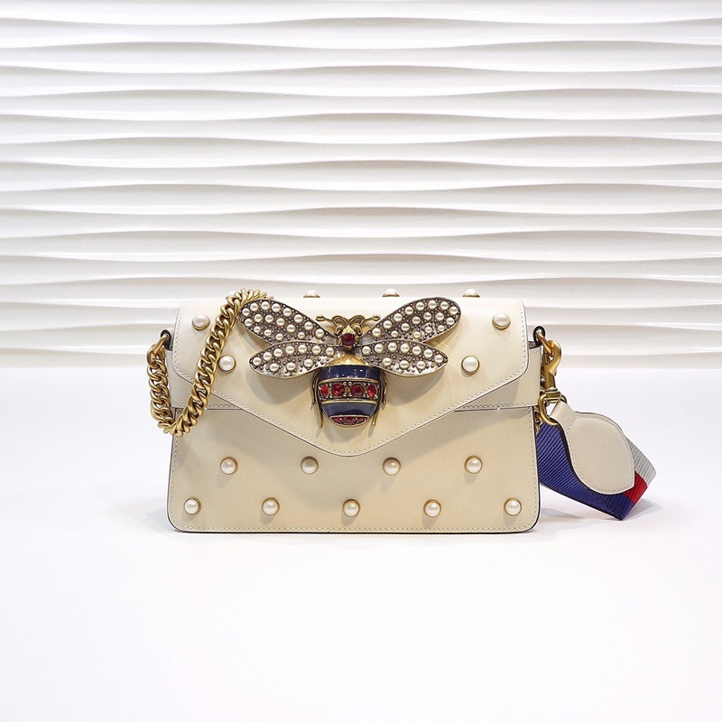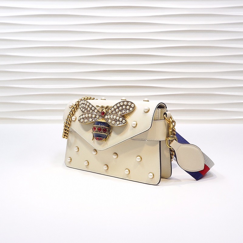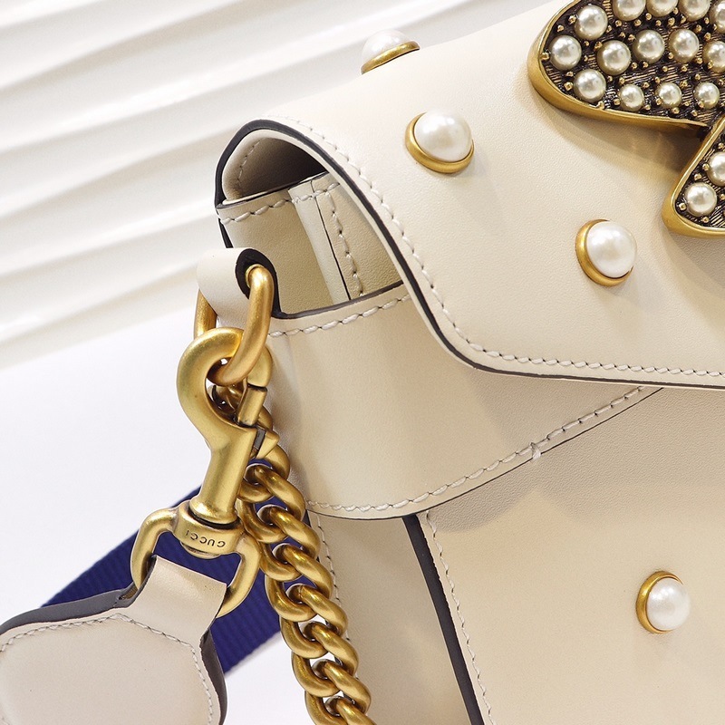 GUCCI 비 골드 스몰 백 숄더 크로스바디 모델 번호 453778 화이트 양가죽 안감 유명인과 동일 크기 25x16x4CM