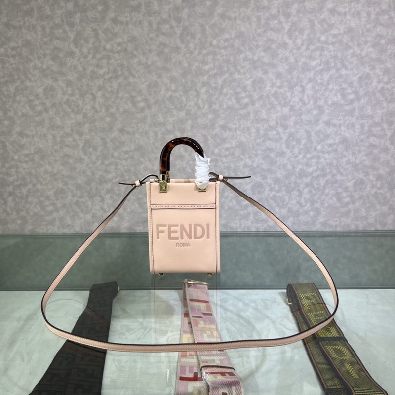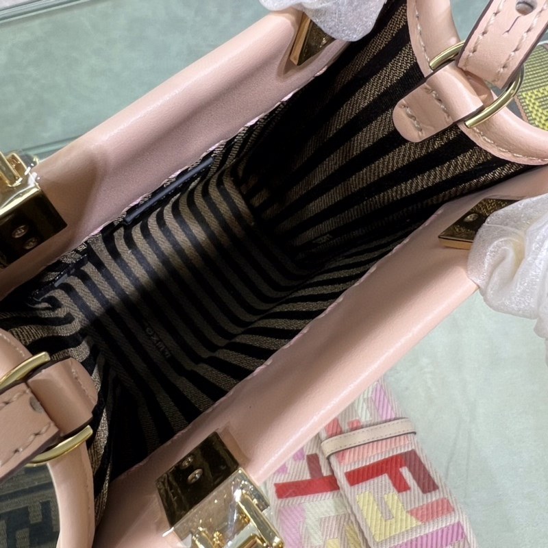 FENDI 선샤인 미니 토트백 라이트 핑크 핫 스탬핑된 FE*DI RO