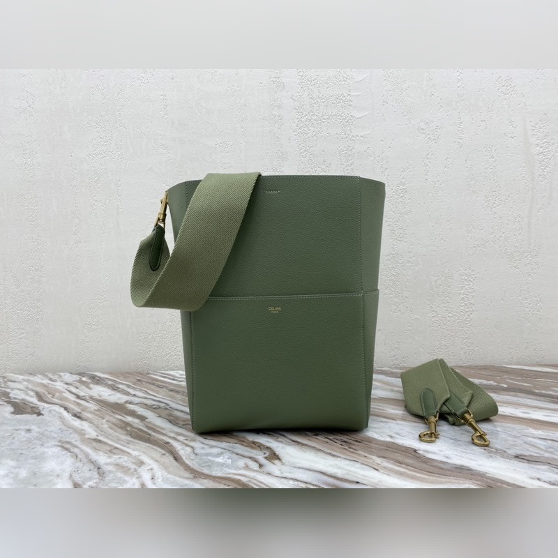 CELINE SEAU SANGLE 그레인 송아지 가죽 숄더백 모델: 18