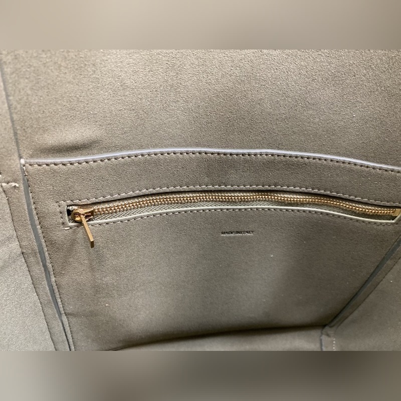 CELINE SEAU SANGLE 그레인 송아지 가죽 숄더백 모델: 180543 탈부착 가능한 울 어깨끈 내부 고리형 지퍼 4개의 외부 플랫 포켓 평평하고 안쪽 주머니가 지퍼로 되어 있음 금색 금속 부품 100% 송아지 가죽 100% 리버스 퍼 안감 차원 23 x 33 x 17cm